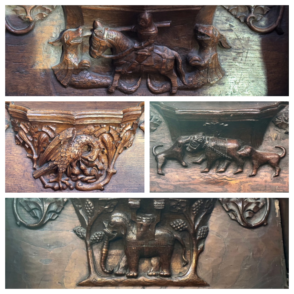 The paintings in the Lady Chapel date to 1500 and depict miracle scenes attributed to the Virgin Mary. They lie beneath a set of reproduction panels - but don't turn away - they give a wonderful sense of the period - how it might have felt to first see the room.