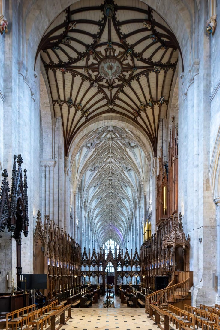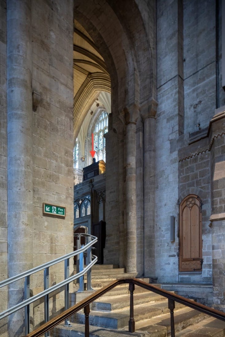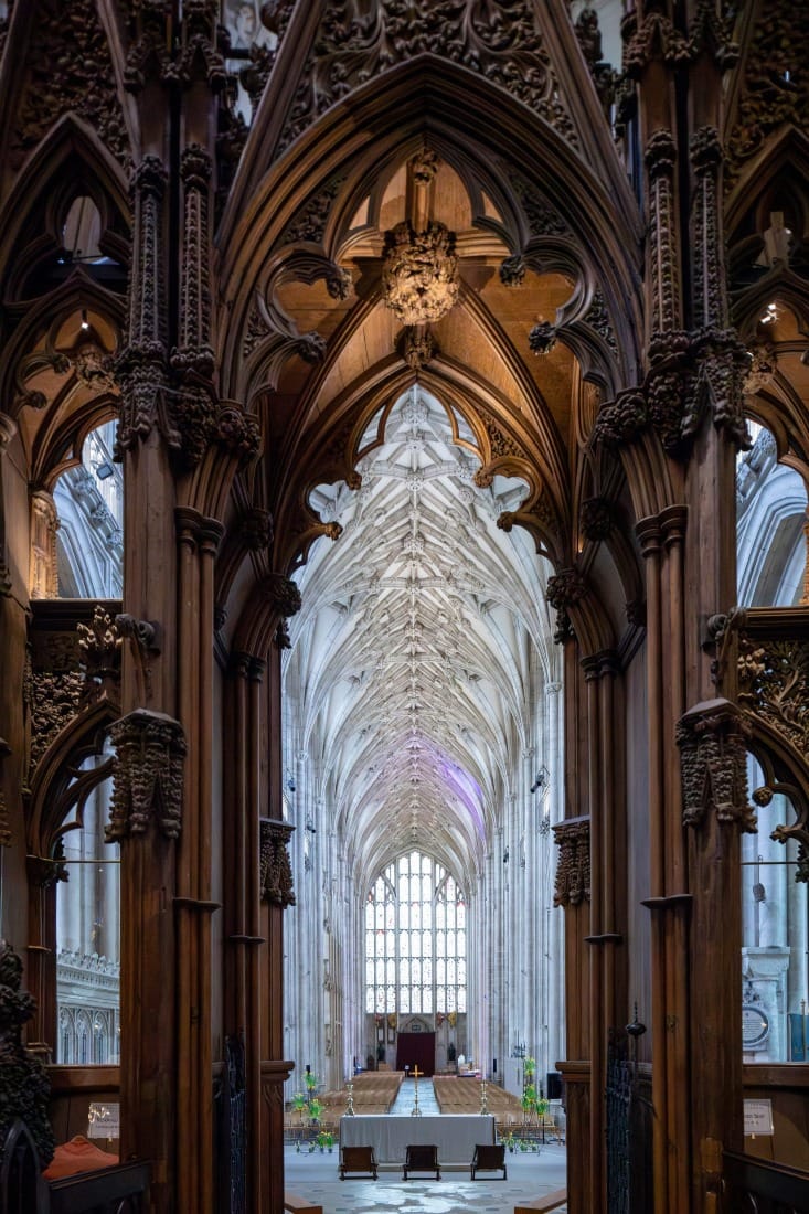 From where I'm standing, I look up at one of the boxes and squint to try and read the Latin script. One person walks past with her eyes glued to her device, and I get in the way of another who has to change his tack to get a selfie next to the traceried window. 'Why are people not looking up?' I think