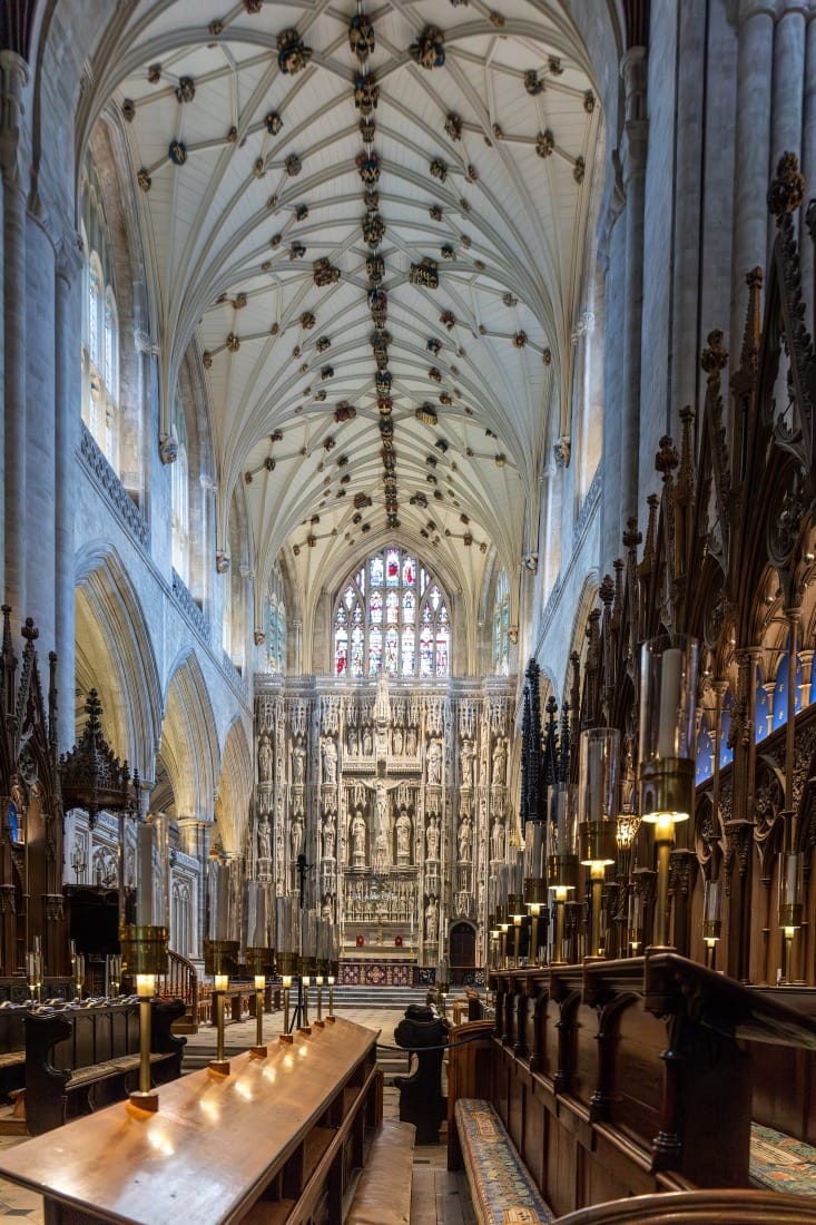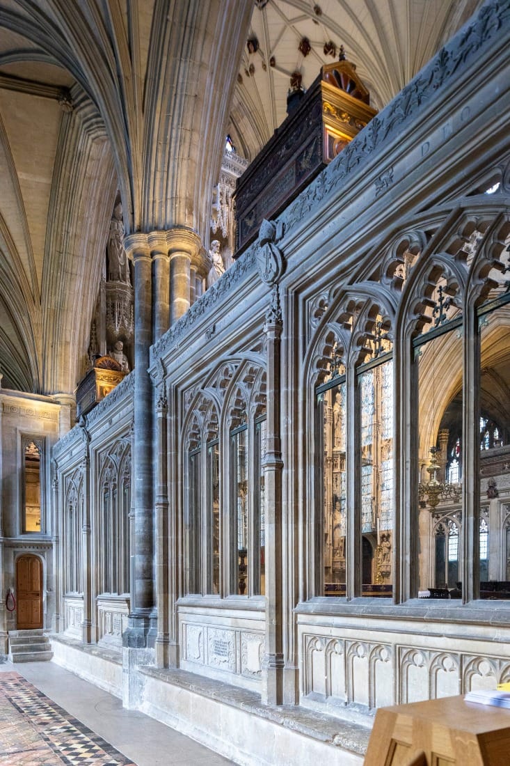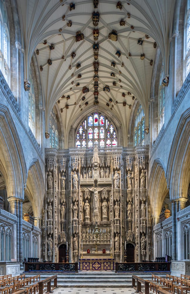 The Great Screen was completed in 1476 and forms the backdrop (reredos) to the altar. It was desecrated in the C16th with many statues being replaced in the Victorian era. It's size and scale is remarkable - a photograph can't really do it justice.