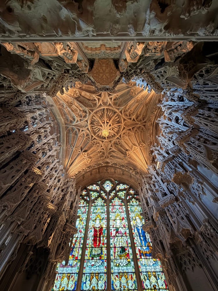 But as I walk through the nave into the macrocosm, I am drawn into the microcosm - a portal in the side aisle. The Prior’s Door, once the monastic community’s entry from the cloister, is framed by a complex weave of stone carvings. They speak of the Final Judgment, the ascent to heaven, the weight of eternity