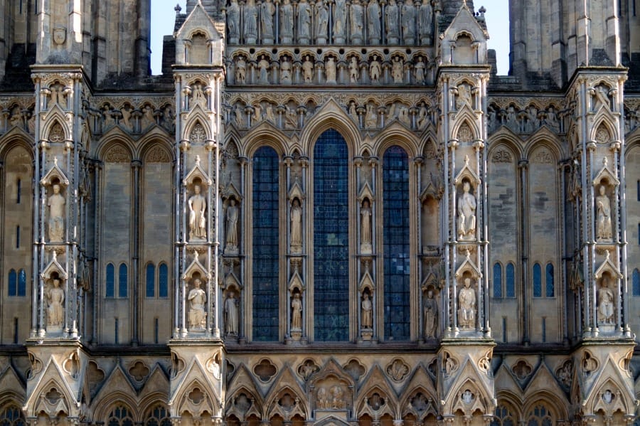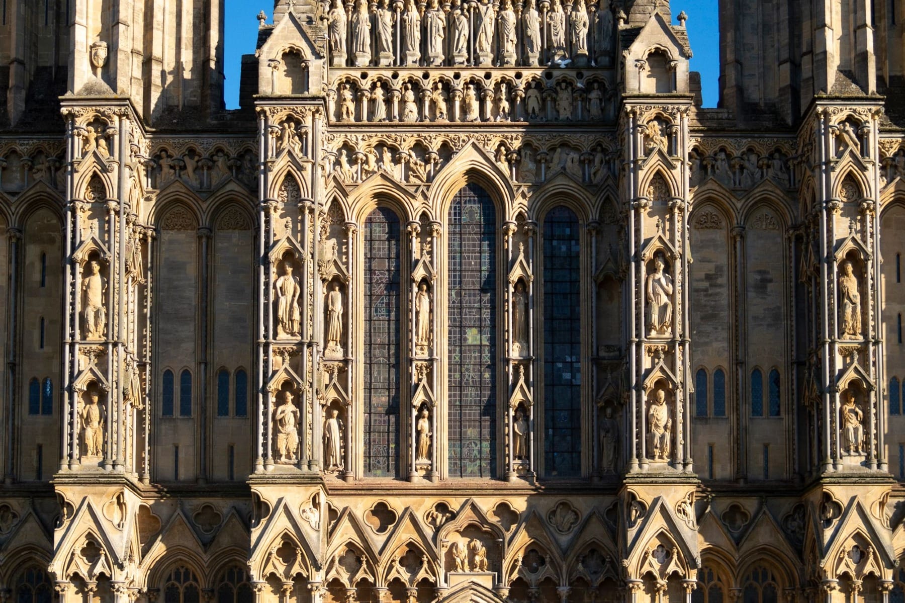 At Wells, the viewer is being set up in a medieval virtual reality: an actor within the vast stage set out before them - a stage storied through the remarkable stone carvings that depict the whole expanse of time - from the creation of the Garden of Eden to the Resurrection.