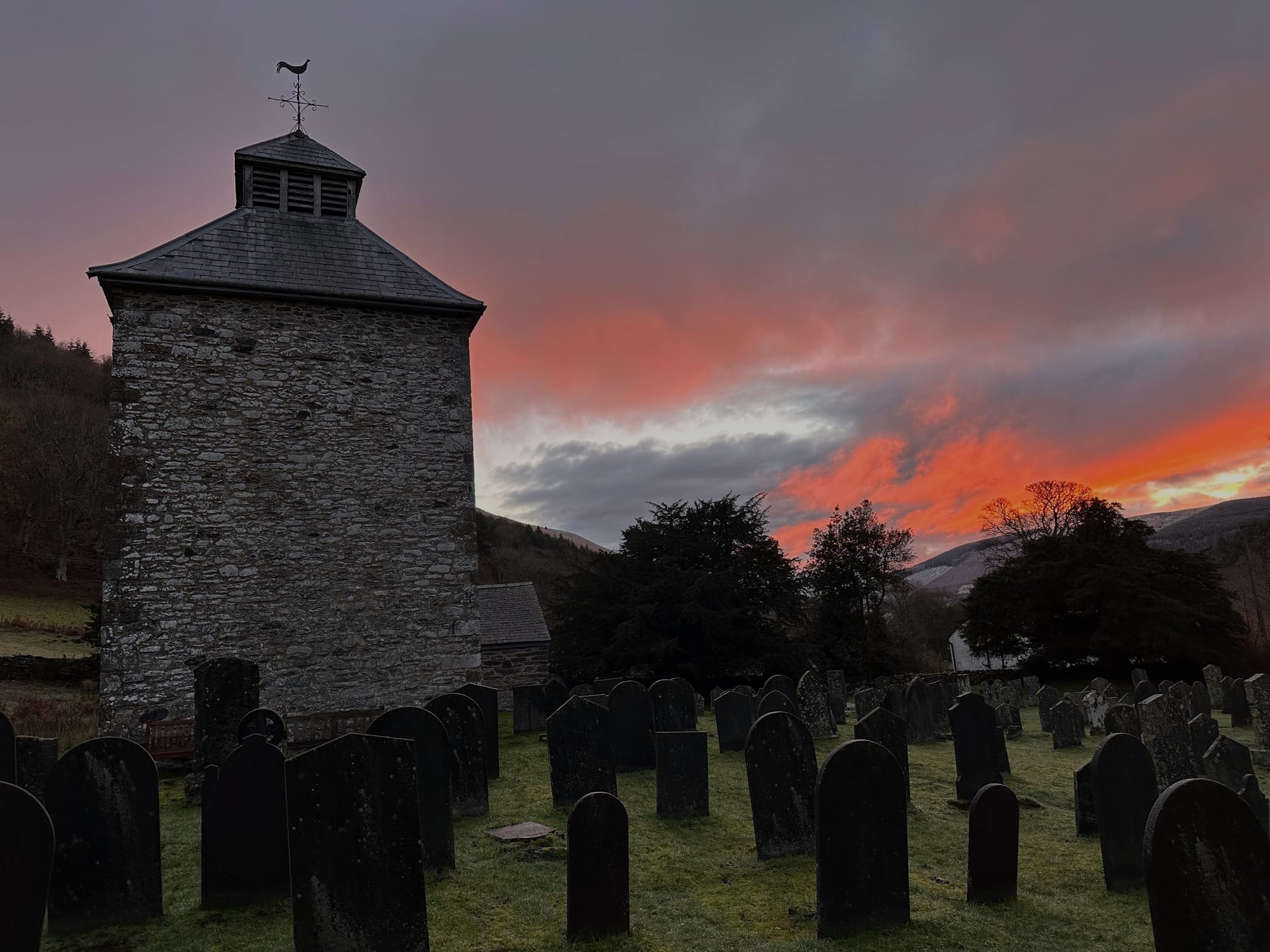 Travelling along the lane to St. Melangells is an act of filtration, a redaction of modernity. The pressing matters of the day are pared down with each passing turn. The landscape provides a correspondence with the transition of time - the valley bottoms out into flattened serenity as the Berwyn hills rise like embattlements pitched against any sense of doubt as to the horological magic at play.
