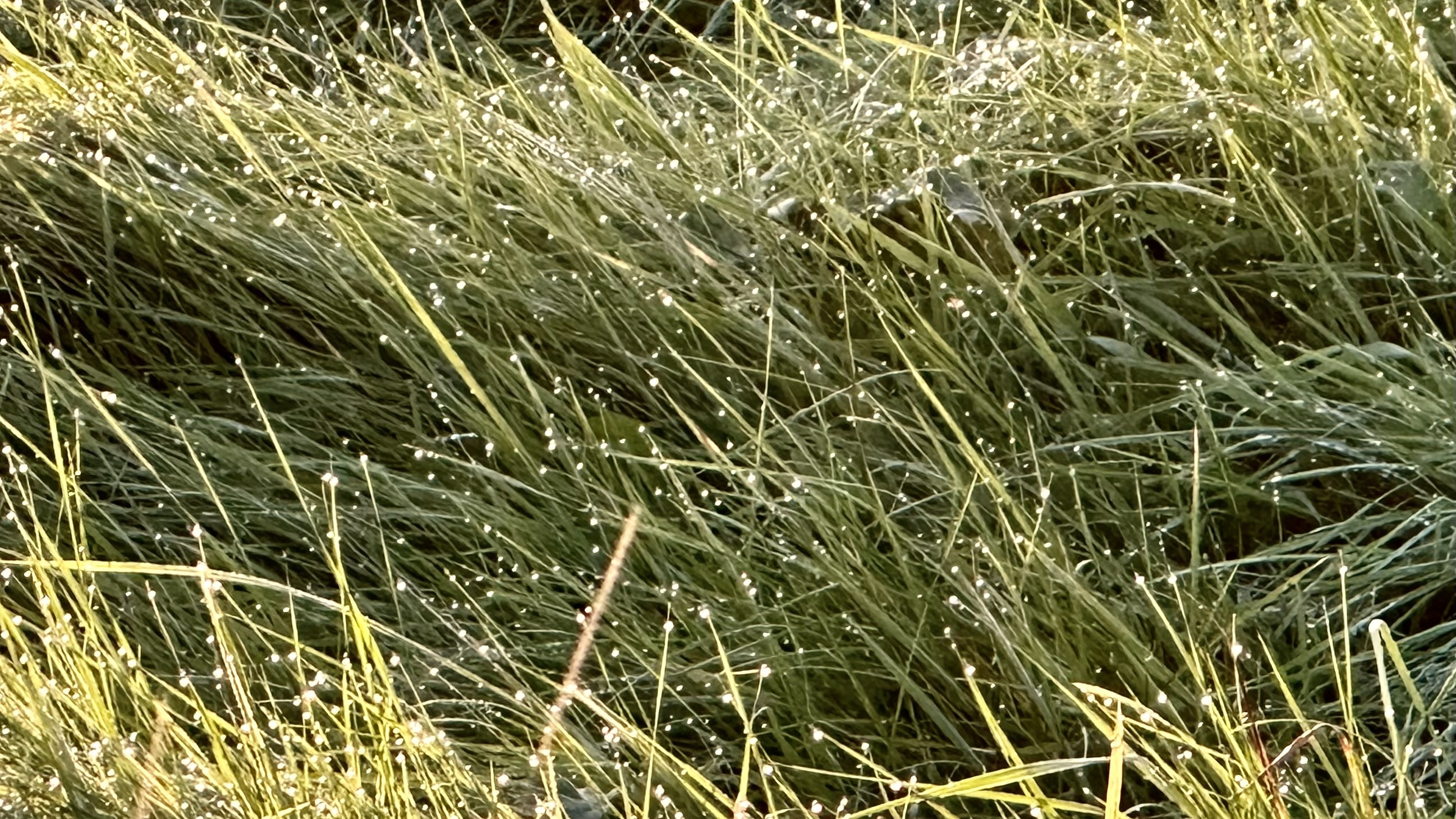 The timing feels right. It’s a singular day with a singular sunrise that’s reflected and repeated innumerably in a host of dew drops in the field before me. Every dew drop is a perfect rendition of this new day. I squint and see millions of particles of light refracted in the grass. I think how remarkable it is that an infinite number of possibilities can arise from such a single isolated event.