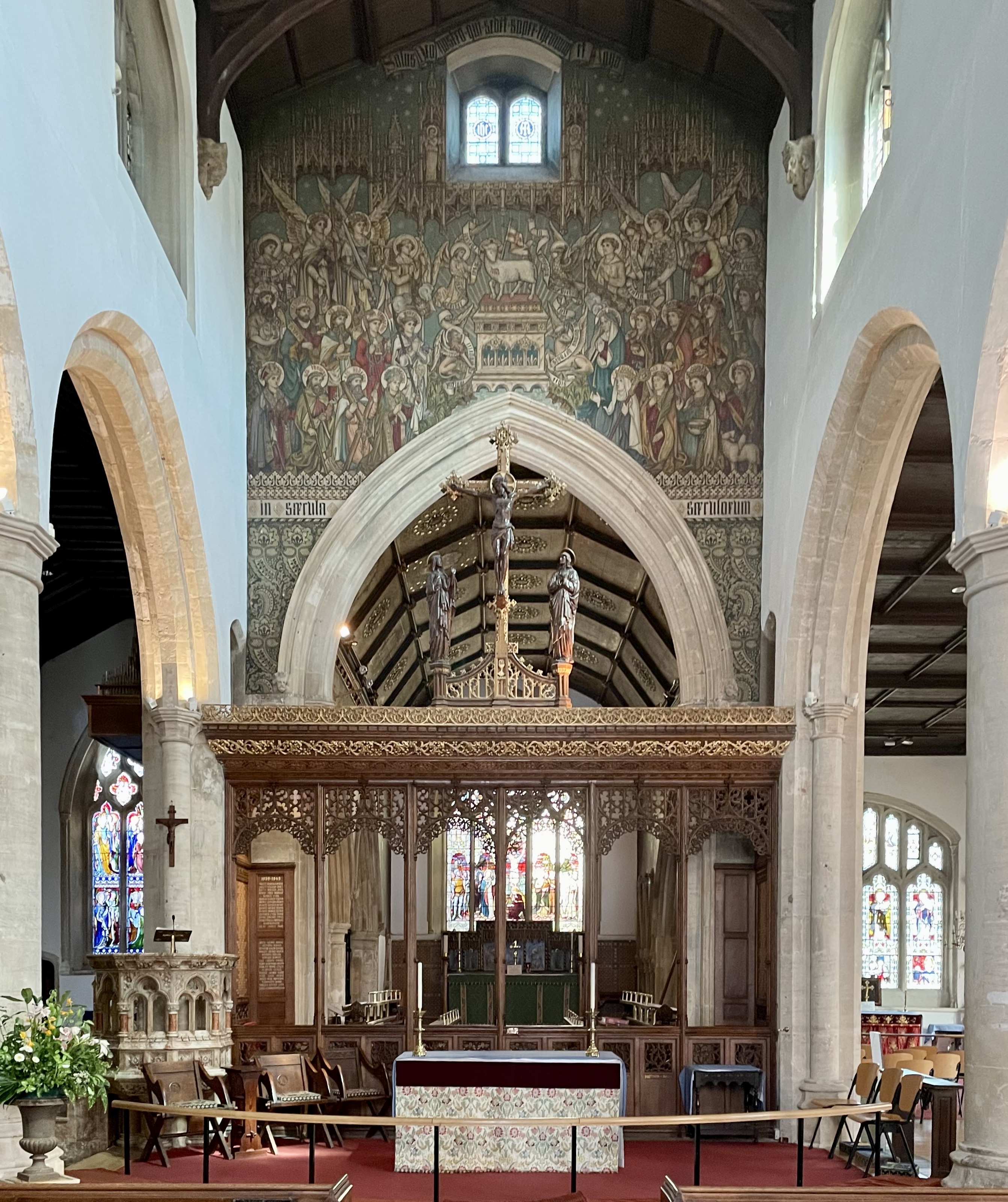 A multi-phased church originating in the C12th with a C16th tower. It holds the east of the high street together with a lovely grouping of buildings and railings.