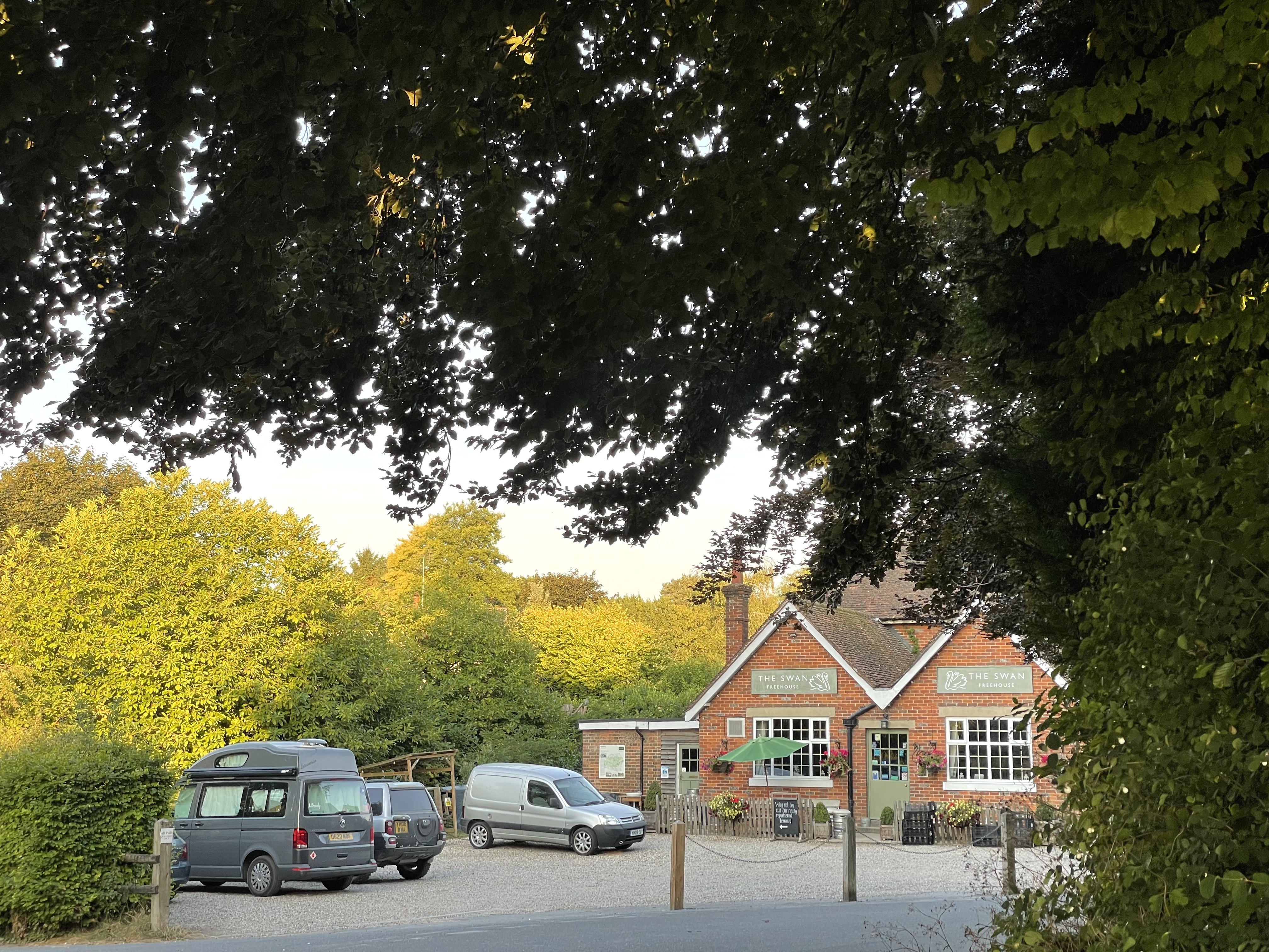 I head for a village near Marlborough in Wiltshire called Wilton. There's a little pub there that might have enough room for the VW. I call them up and they tell me to park at the shrub end of the car park. Staying over in pub car parks is fraught with danger. Firstly - temptation, secondly, closing time snoopers, and finally, narrow parking spaces.