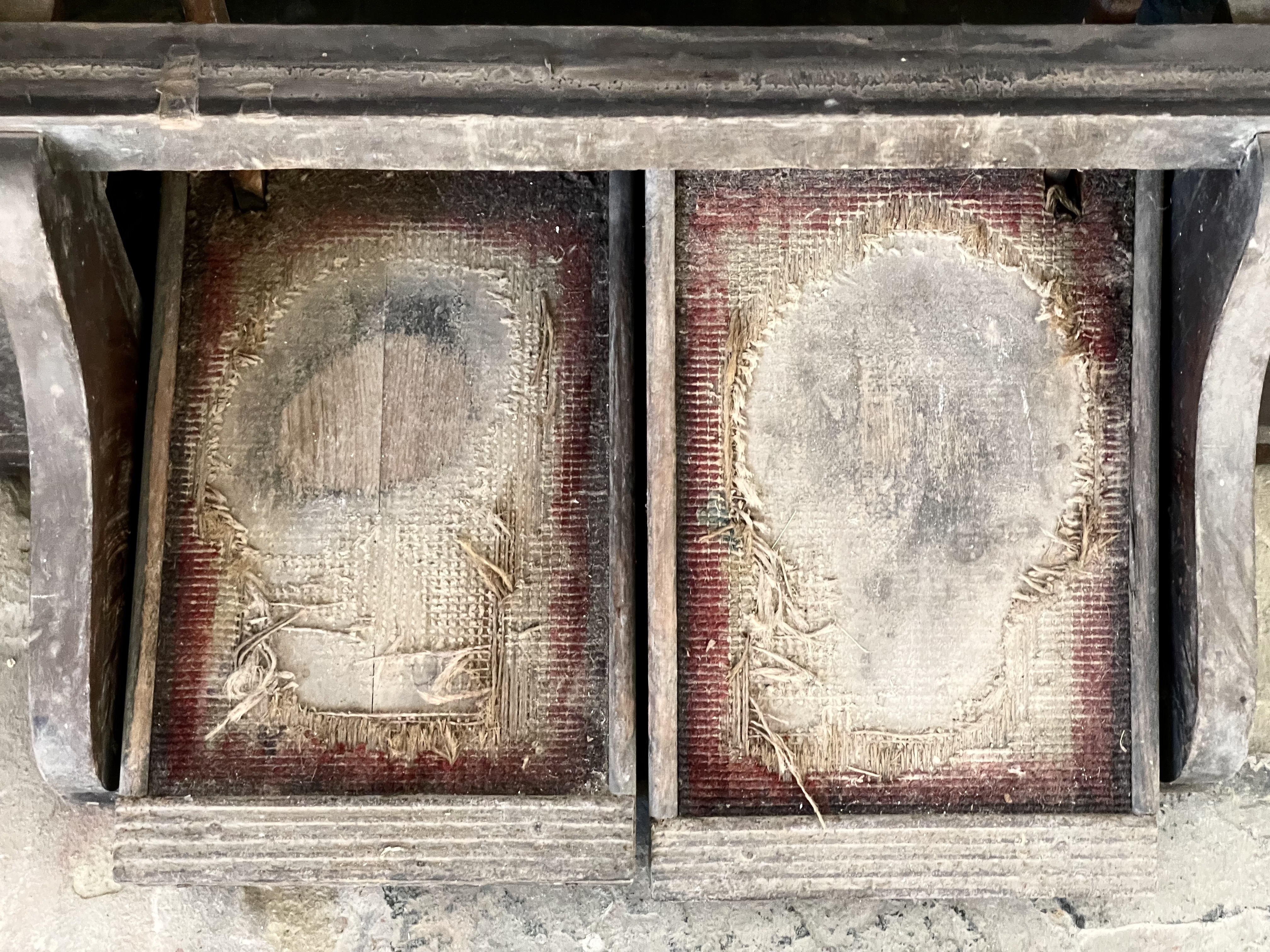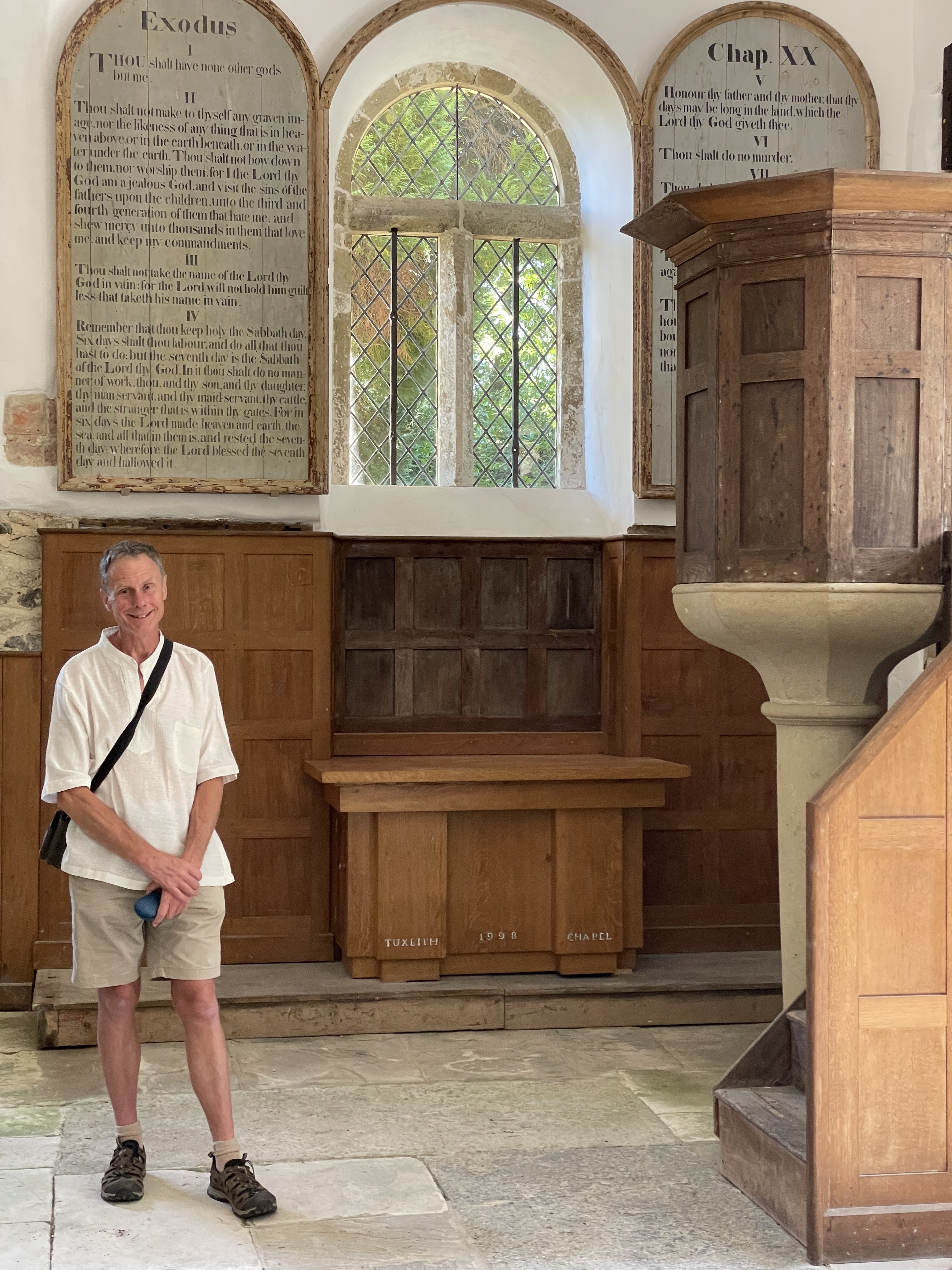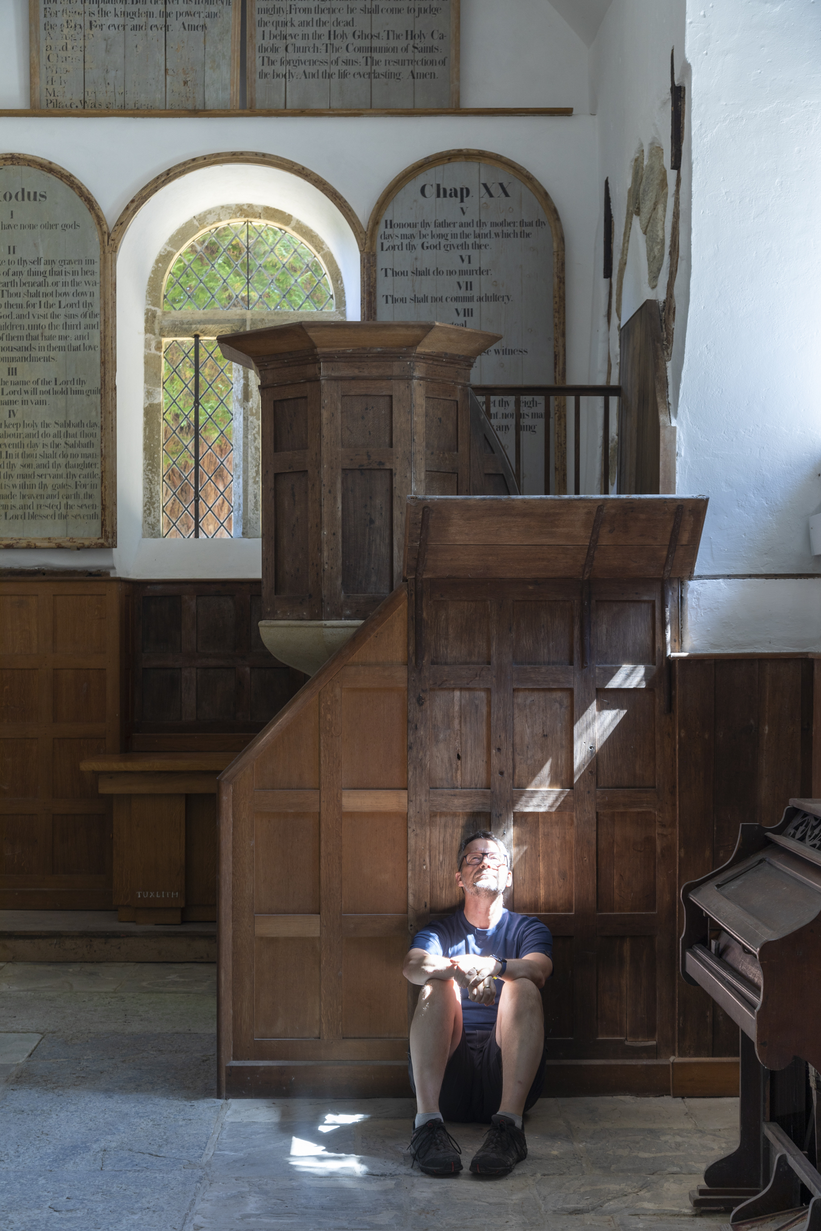 My invocation to the marks and imprints from times gone by at Tuxlith, conjured up a real human being. Peter Martindale had come to photograph his conservation work on the prayer boards behind the altar - so I took a shot of him and his work.