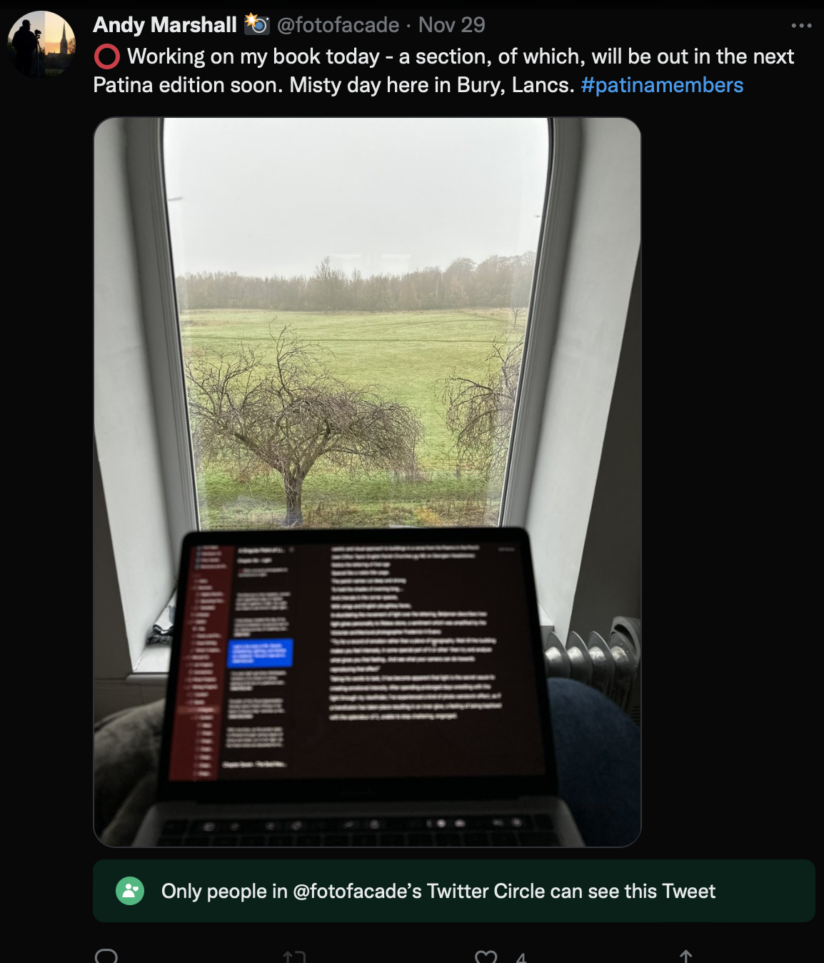 Are you a member or patron and not in the Twitter Circle? Send me your handle and I’ll add you to it. I’m @fotofacade on twitter.
