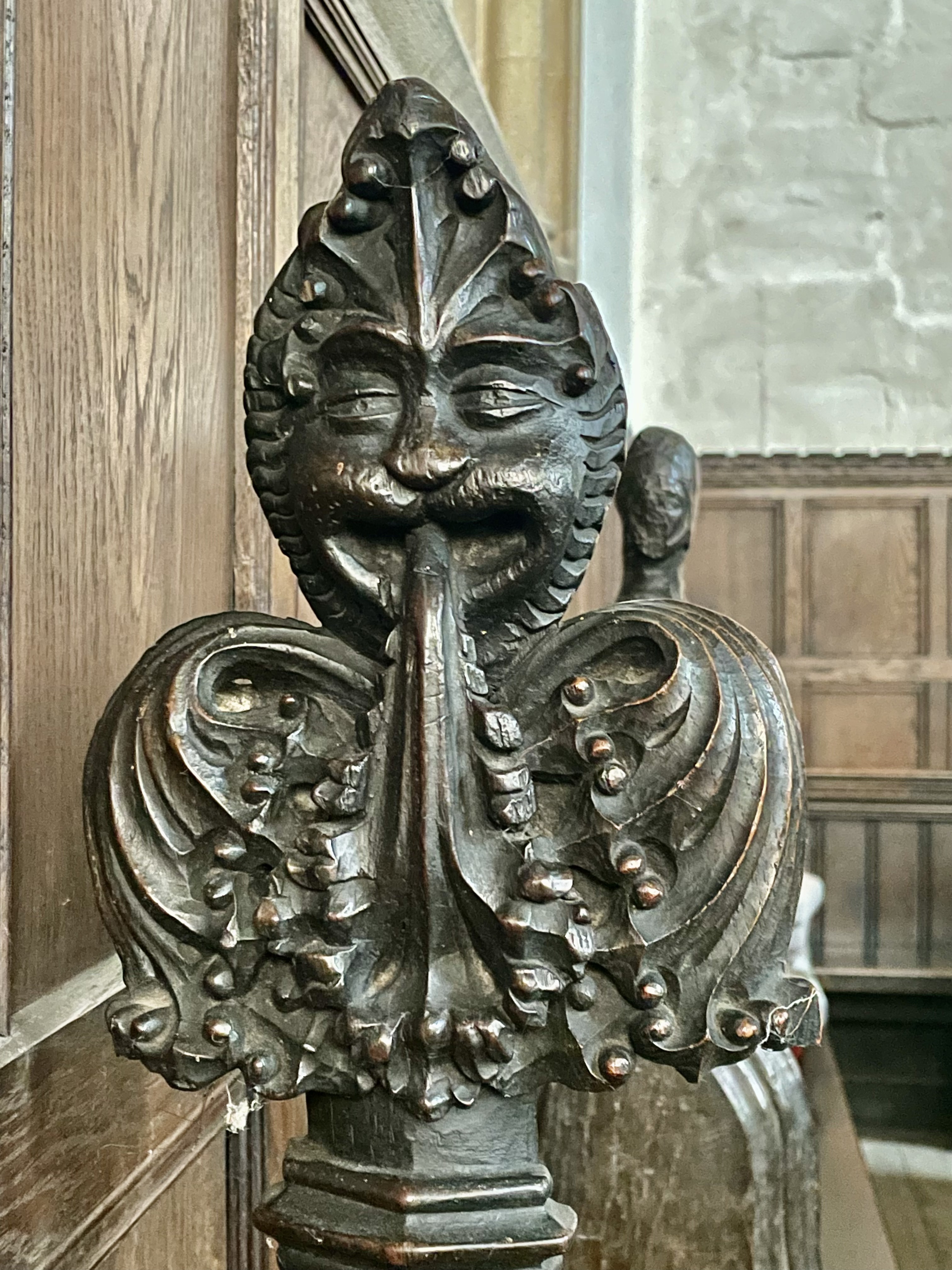 The choir stall carved finials are a delight. They're quite 'heavy' - maybe early C17th?