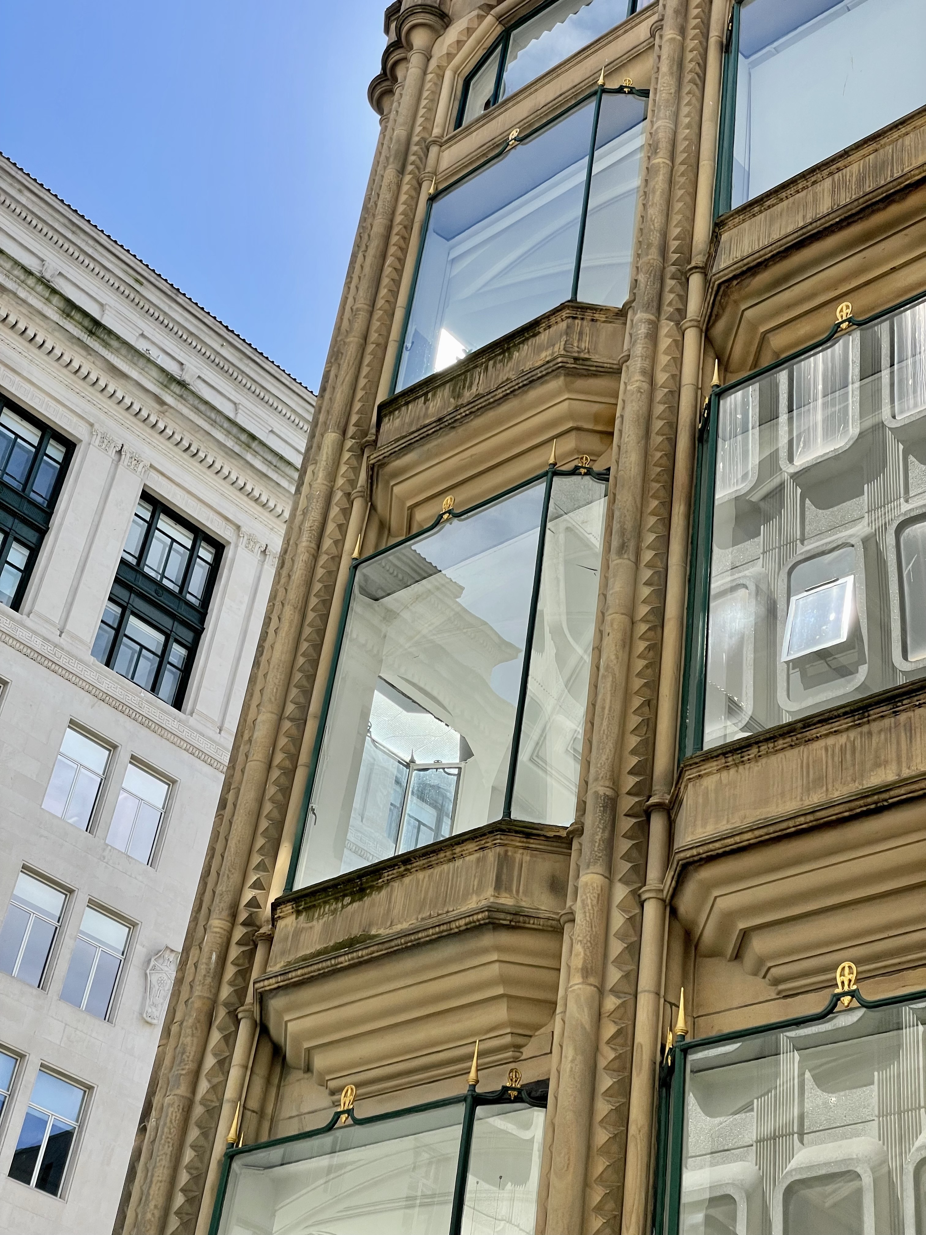 It's a grade I listed building - the same as a medieval cathedral. The listing describes it as 'a pioneering building in the use of expressed cast iron construction.' Others claim it is the first ever skyscraper in the world. For me, it has a beauty of design that is modern and yet rooted in the past. Its oriel 'egg-box' style windows have been echoed across the city in later buildings.