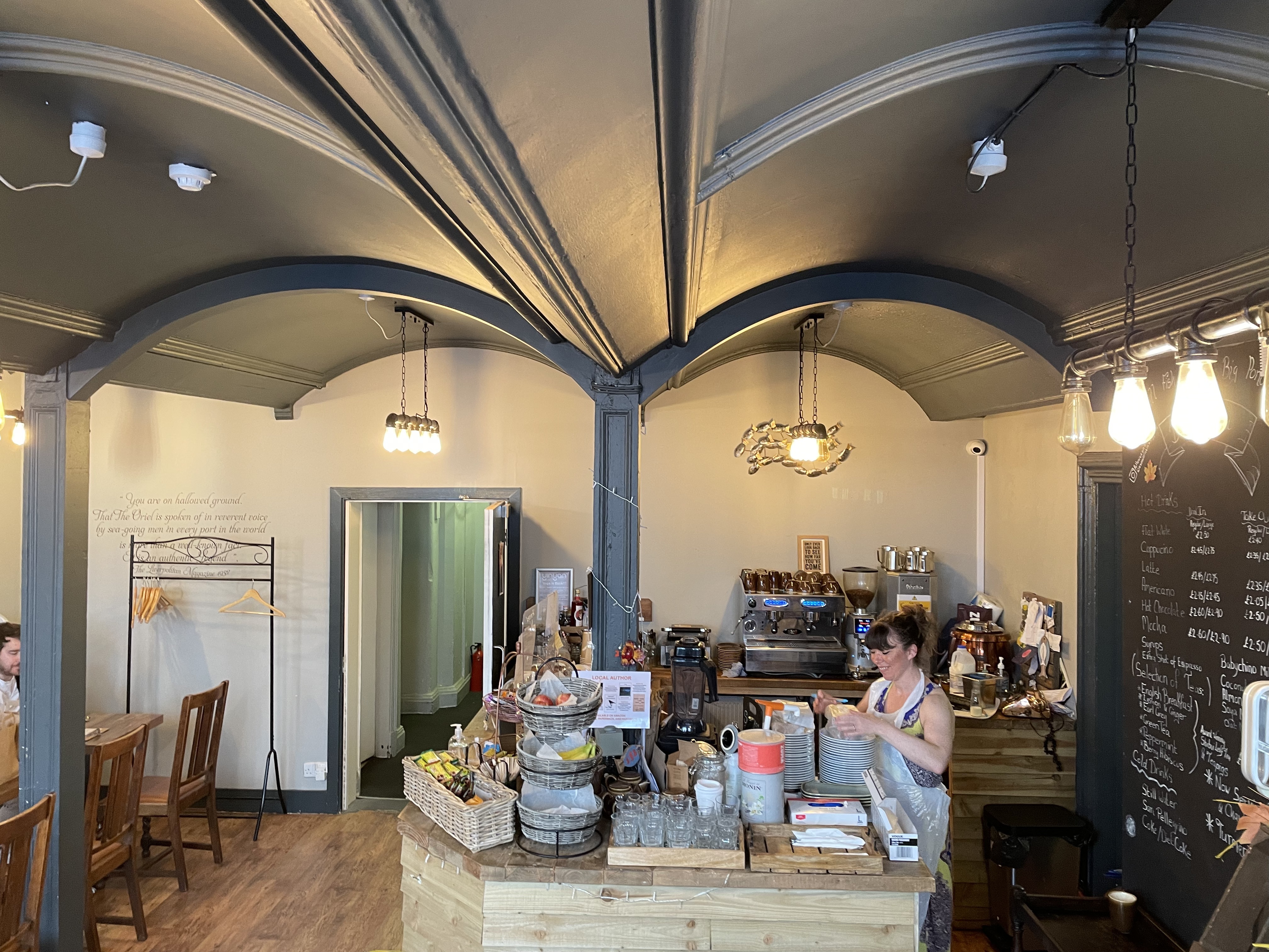 Oh the joy of finding a cafe (with good coffee) within Oriel Chambers! A chance to see the pioneering internal construction. A good 'engineers' cafe.