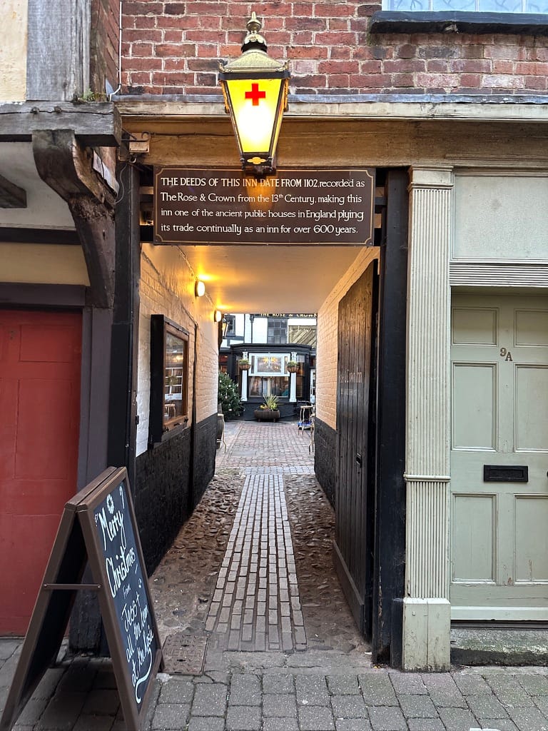 The Rose & Crown has one of those delicious entry points that is full of intrigue and mystery - through a ginnel and into a courtyard. The Deeds of this place date from 1102 and it was recorded as The Rose and Crown from the C13th.