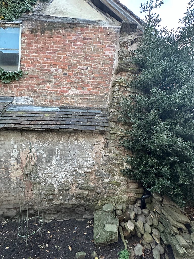 There is a cast lead rainwater head to the front with letters ' H ' and '1741' with crown motif. To think that it has survived and functioned all of this time.
