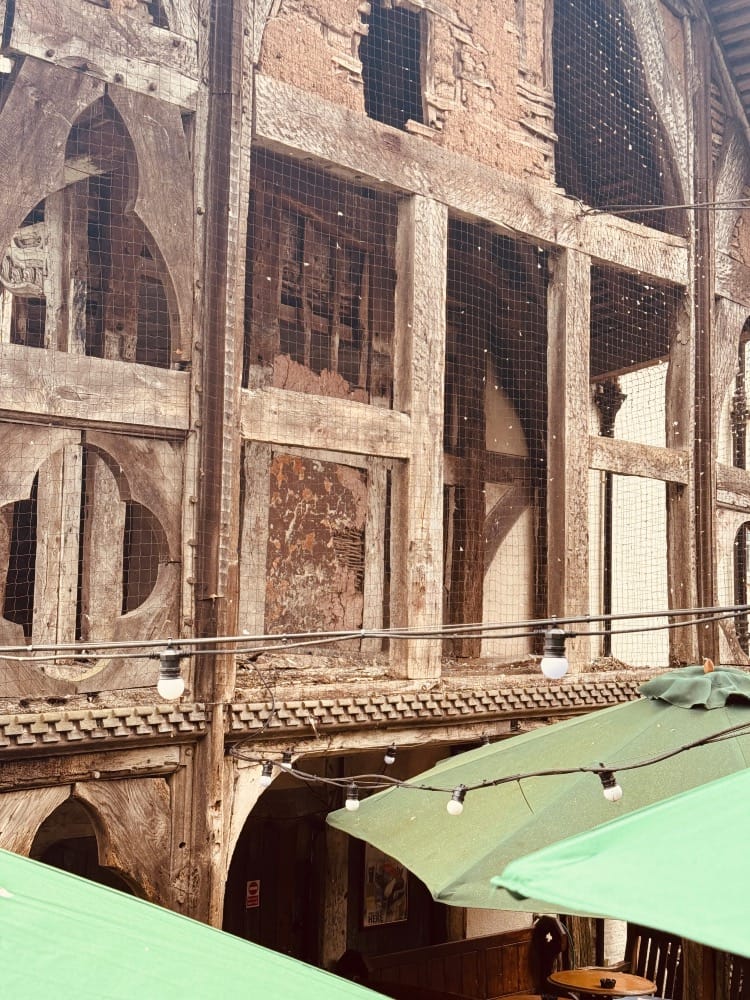There is something striking about this weathered lattice of timber bones, something that stirs a sense of reverence. Built in 1597 by Nicholas Gibbons, a local lawyer, this three-storey house has endured centuries of change. In the 19th century, it served as the stained glass workshop of Betton and Evans. It was badly damaged by fire in the Second World War, but its fragility was rewarded with an appearance in the 1984 film A Christmas Carol. Still, its frame stands exposed amidst the jocularity of a beer garden – a husk of what it once was – its structure precarious yet oddly enduring.