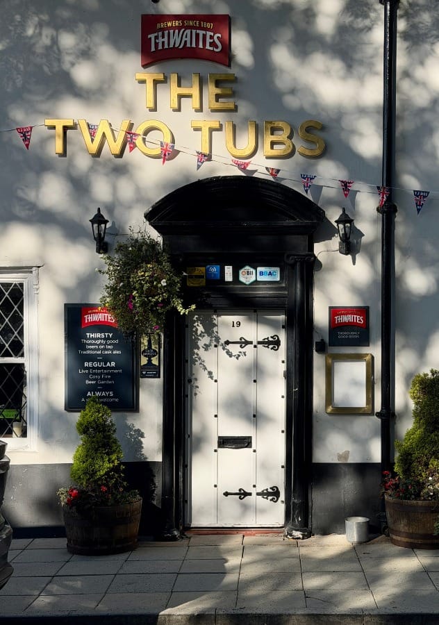 In 1830 landlord Mr Shaw responded to the neighbouring Old White Bear’s new signage by sawing a barrel in half to form a globe, the hoops and staves intended to represent the lines of latitude and longitude. The Two Tubs’ nickname remains to this day.