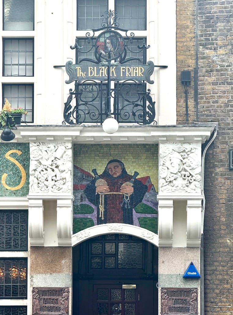 The Black Friar in London, built in 1875 and remodelled around 1905 by architect Herbert Fuller-Clark, is a masterpiece of the Art Nouveau milieu.