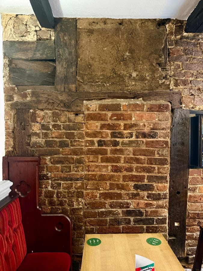 The knowledge that the Two Tubs was originally timber framed was once part of folklore until somebody removed a plastered wall and found the original timber framing behind it - with lots of the lime plaster and wattle still in place.