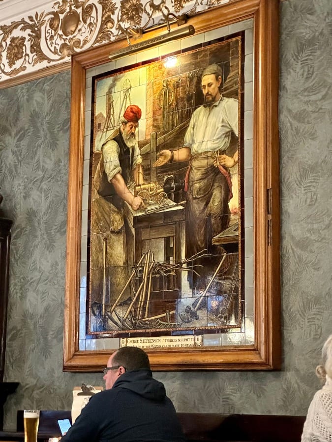The interior has some priceless Royal Doulton ceramics painted by John Eyre, depicting William Caxton, Michael Faraday and James Watt amongst others.