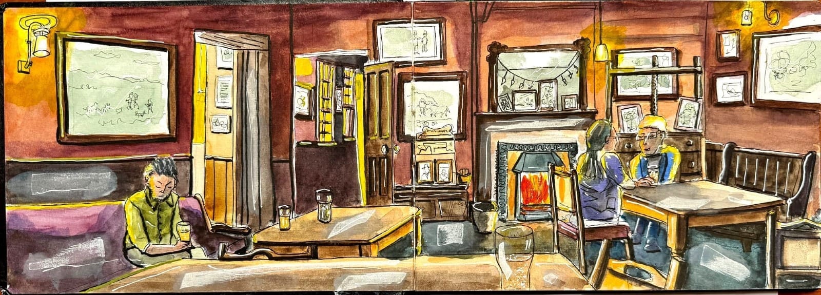 Looked after with care by Jen, it’s one of those places that quietly gets under your skin. The bar’s lined with real ales from local breweries, and the calendar’s full of life - from drawing sessions to craft nights. I’m often found in the corner with a pint in hand, sketching the ebb and flow of people coming and going.