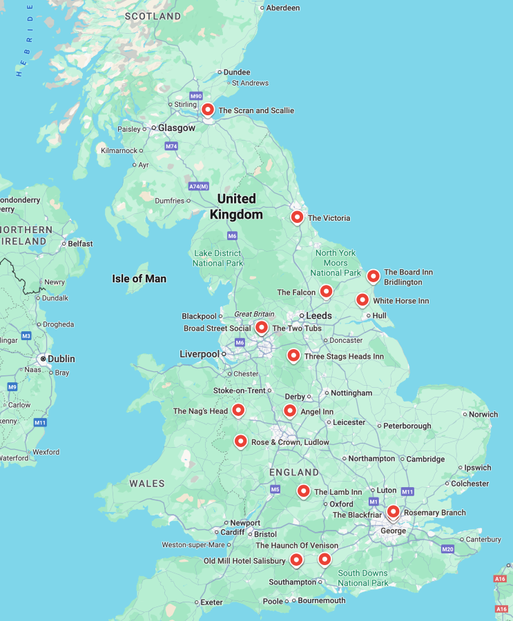 If you would like to explore further - Dale Harvey has a remarkable website and YouTube Channel, where he and his partner, are tasked to visit every pub in the UK.