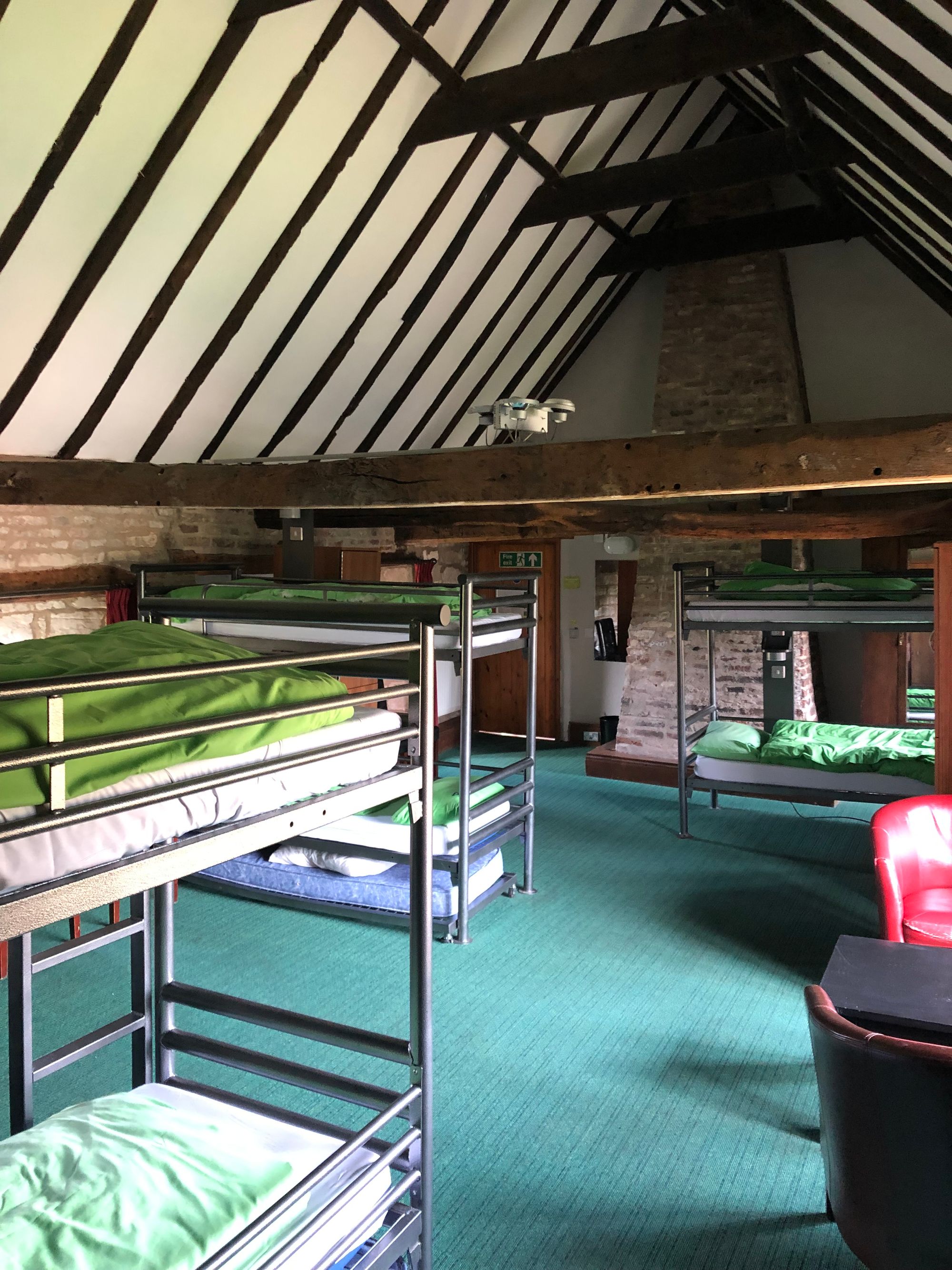 Inside - residents of the YHA can sleep and rest under the medieval timbers and marvel at the C17th decorative paintwork on the walls.