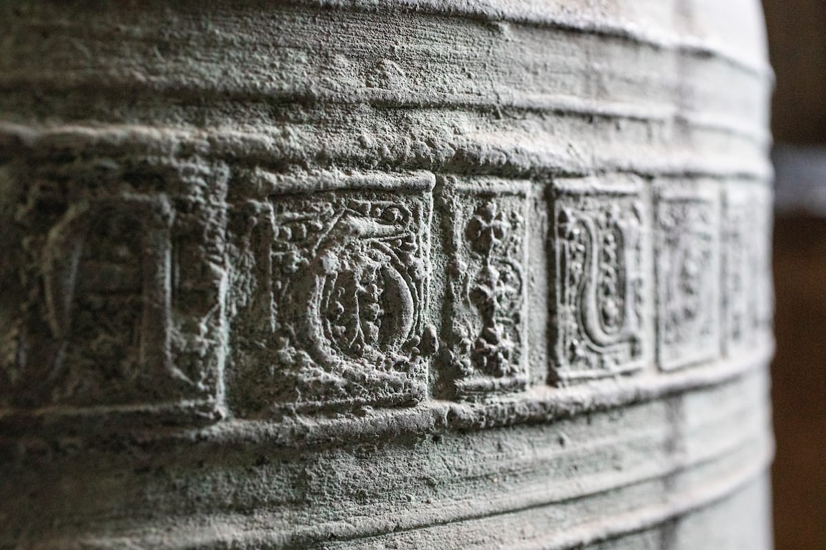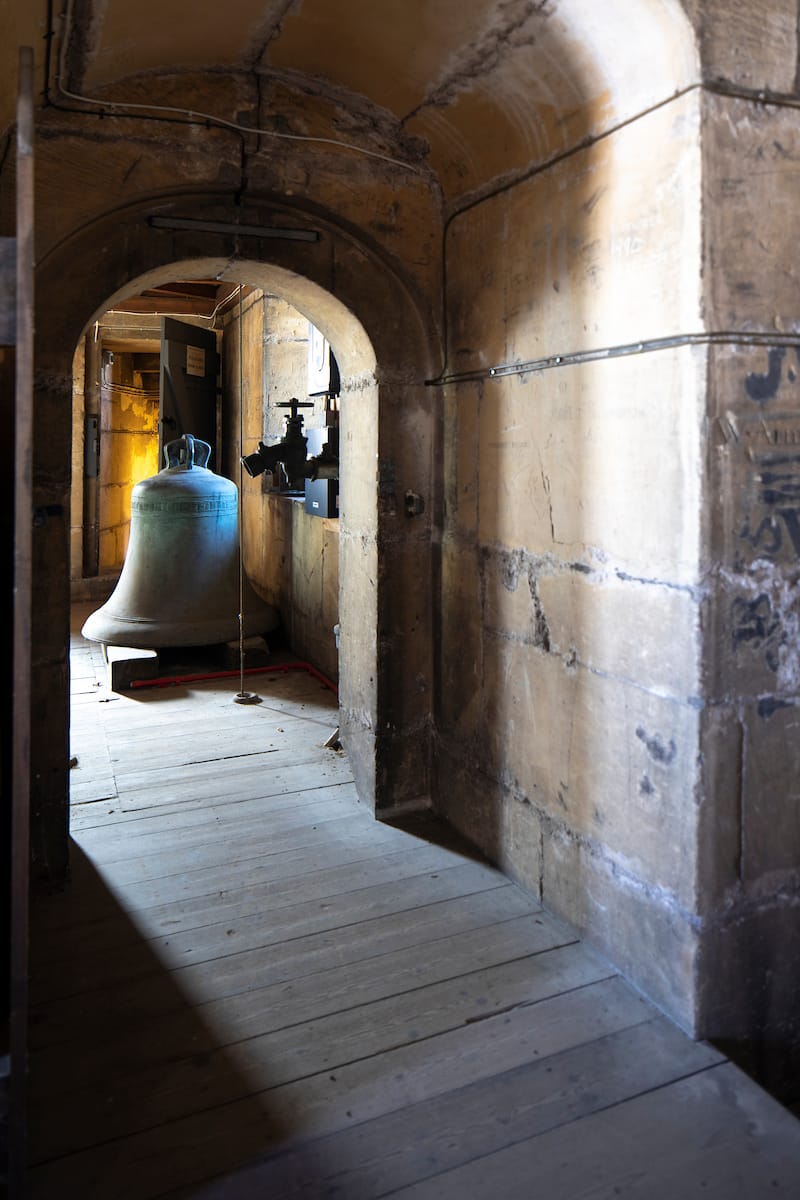 The bell is cast in soft light, so I increase the exposure, straighten the camera’s level, and press the shutter. It’s a long exposure.