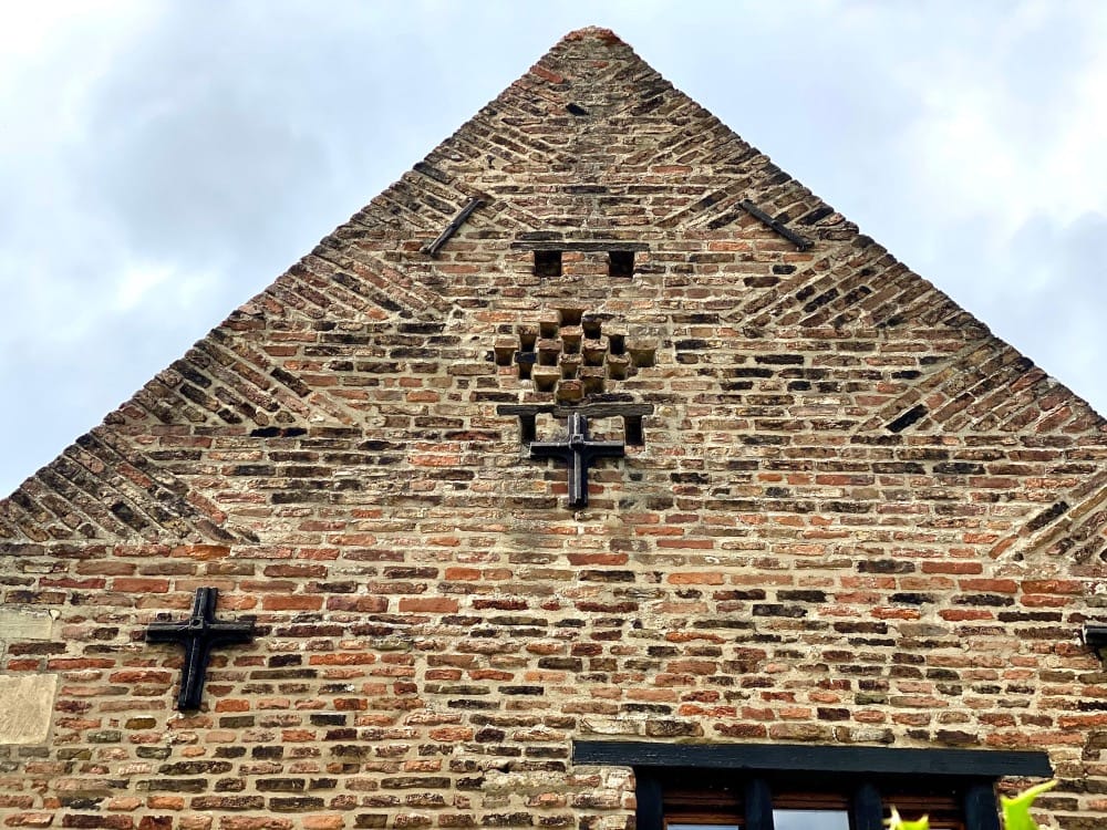 Probably of Dutch origin, tumbled gables are part of the East Yorkshire vernacular. They are made up of bricks formed at angles along the gable edge. The Friary has some of the earliest tumbled gables in the country.