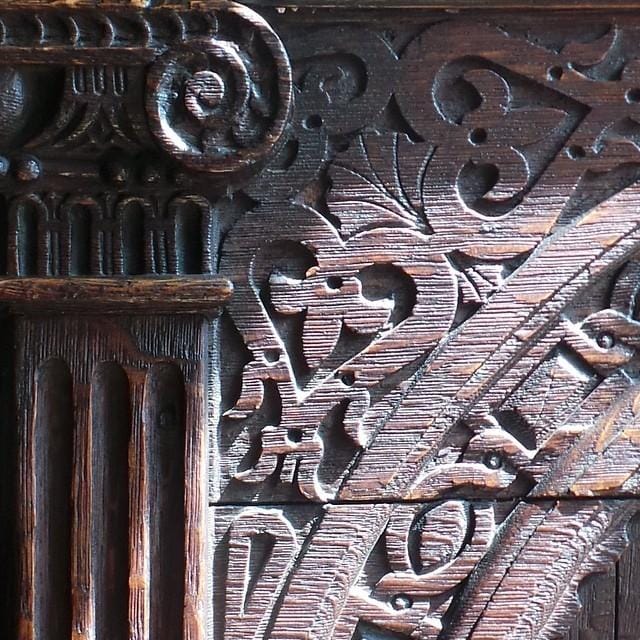 When I look back at the chest, I start to see the deeper rhythm within the piece. The pattern is typical of the Jacobean era—a time when these parts began to awaken to outside influences—a renaissance of ideas and thought. While the Italian Renaissance was like a bright leap out of bed at first light, the English Renaissance was more like a groggy teenager stumbling into the day. Our reawakening to the ancient world often came through pattern books brought back by European travellers and explorers. One such book was by a Dutchman named Vredeman de Vries.