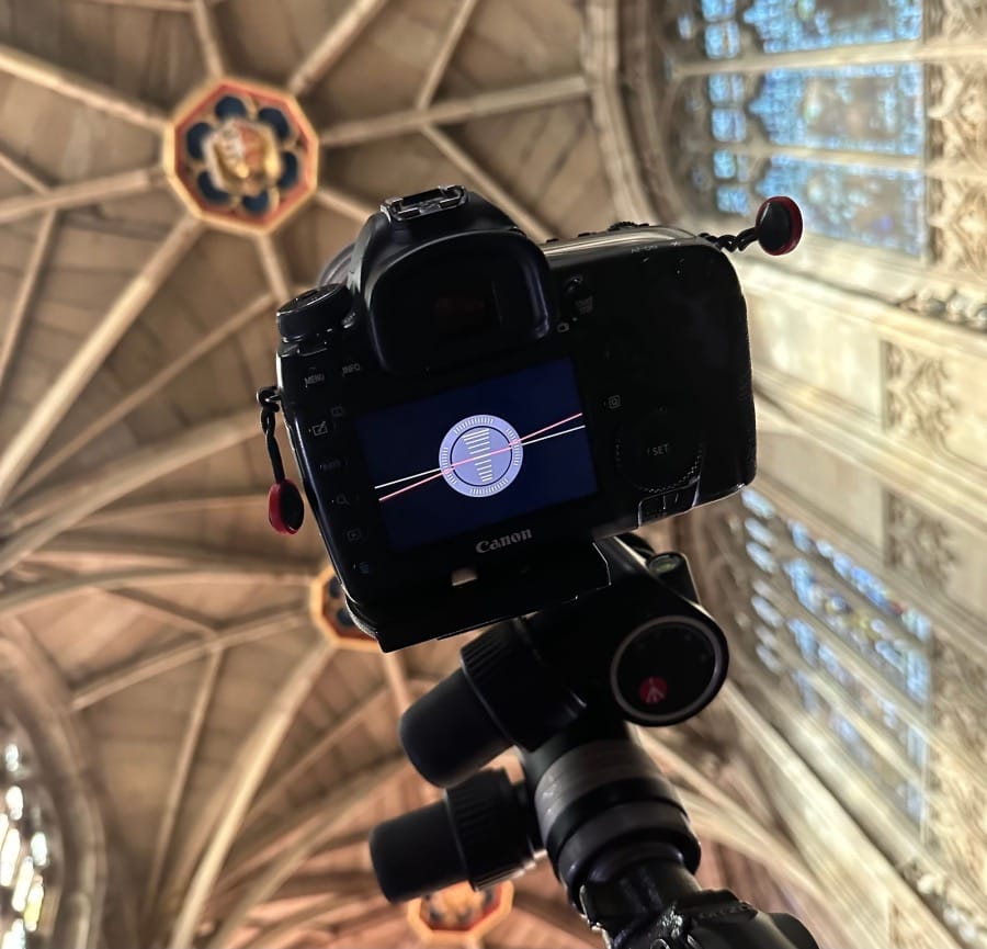 And yet here whilst suspended in the heights of the Minster, something new happens. The dilation of time opens out into a different kind of revelation – not only the slowing of perception, but a sense of union. In an enthralled moment, I become my camera: lens and body one, an all-seeing eye within the body of the church itself. The nave, transepts, and choir are no longer separate vistas but part of a single breathing organism, and I, suspended at its heart, belong to it as much as it to me. It is not vision in the ordinary sense, but an enfolding: the self dissolved into the space, the space into the self.