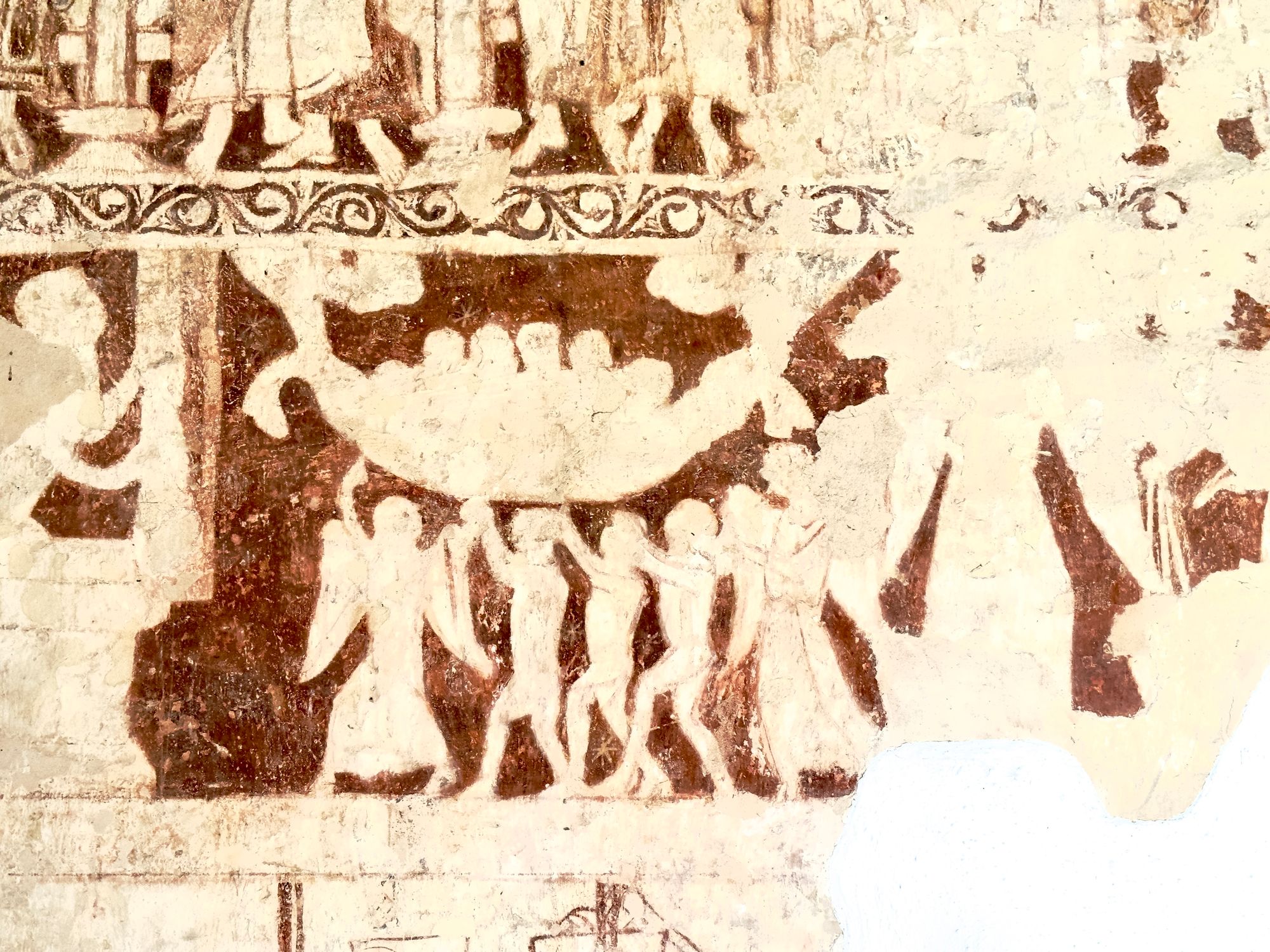 In this little church of scintillating Gothic, the Madonna is an anomaly. The stylistic references to Rome and the Byzantime are obvious. The mid to late Saxon period saw an increase in references to Rome and its material culture as a way of underpinning the legitimacy of kings. The insertion of the carving into the wall of the 'new' building helps keep the Anglo Saxon backstory alive through the material culture.