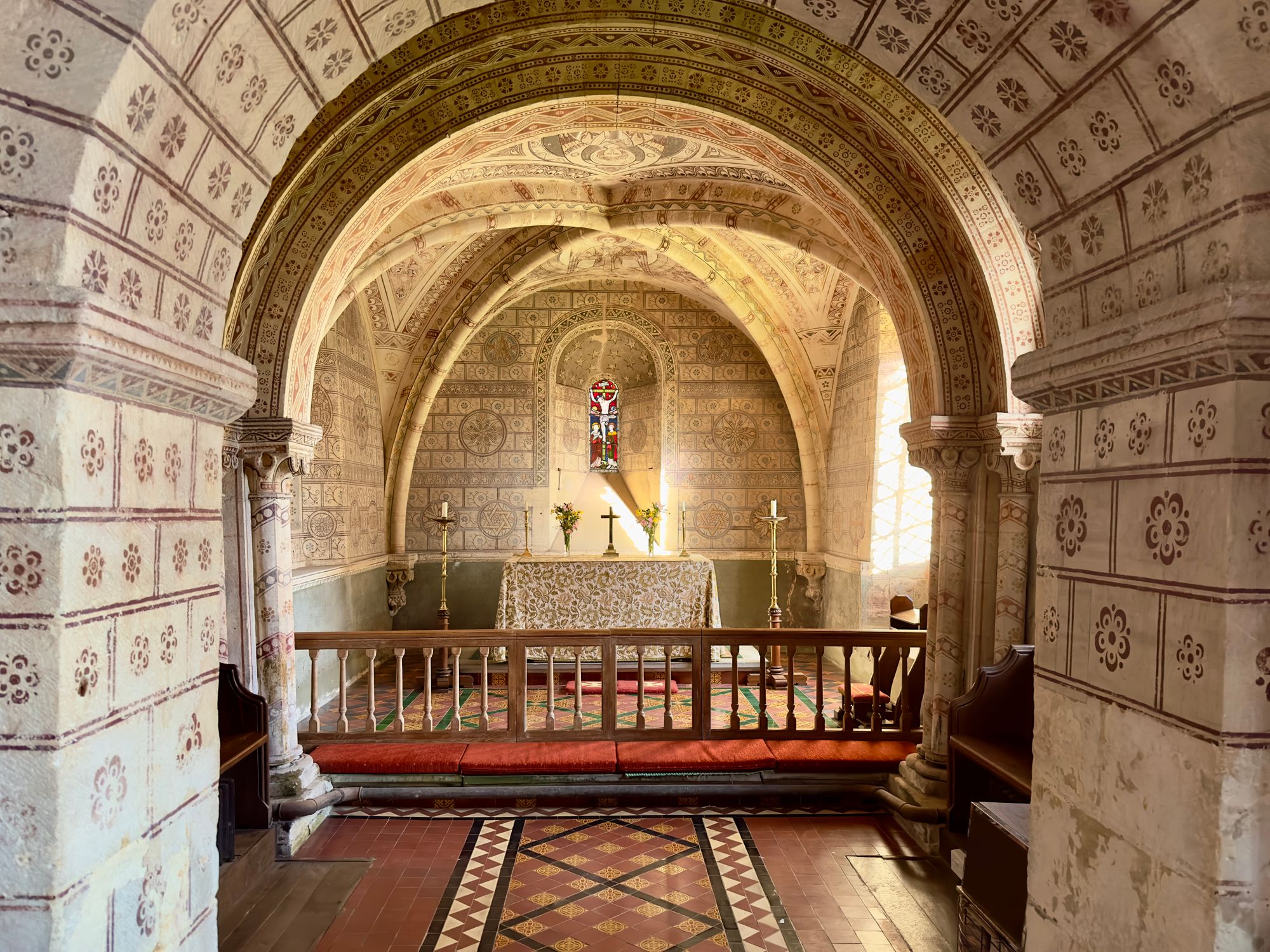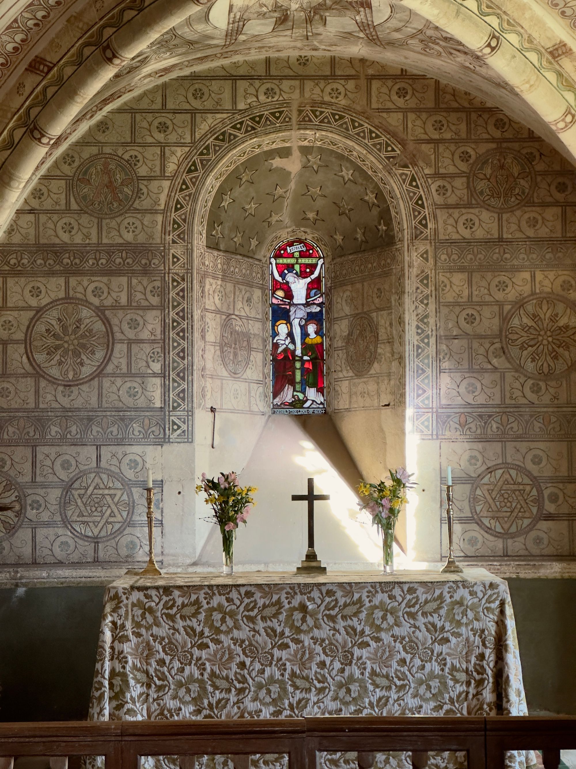Inglesham is so unusual with its partition and parclose - small spaces that are delineated by punctured screens that cast shadows like zebra hide in all directions.