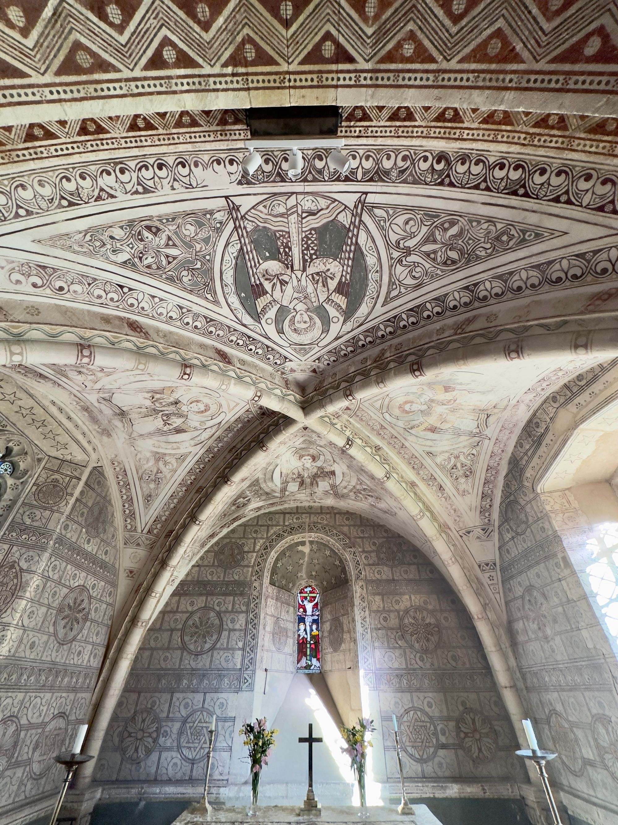 I talk about modern interventions - and this church, for me (and perhaps not for you) has a Victorian paint scheme that enhances the space in the church. The fabric is mainly C12th and C15th but the paint scheme is of the 1870's from the hand of the incumbent at the time.