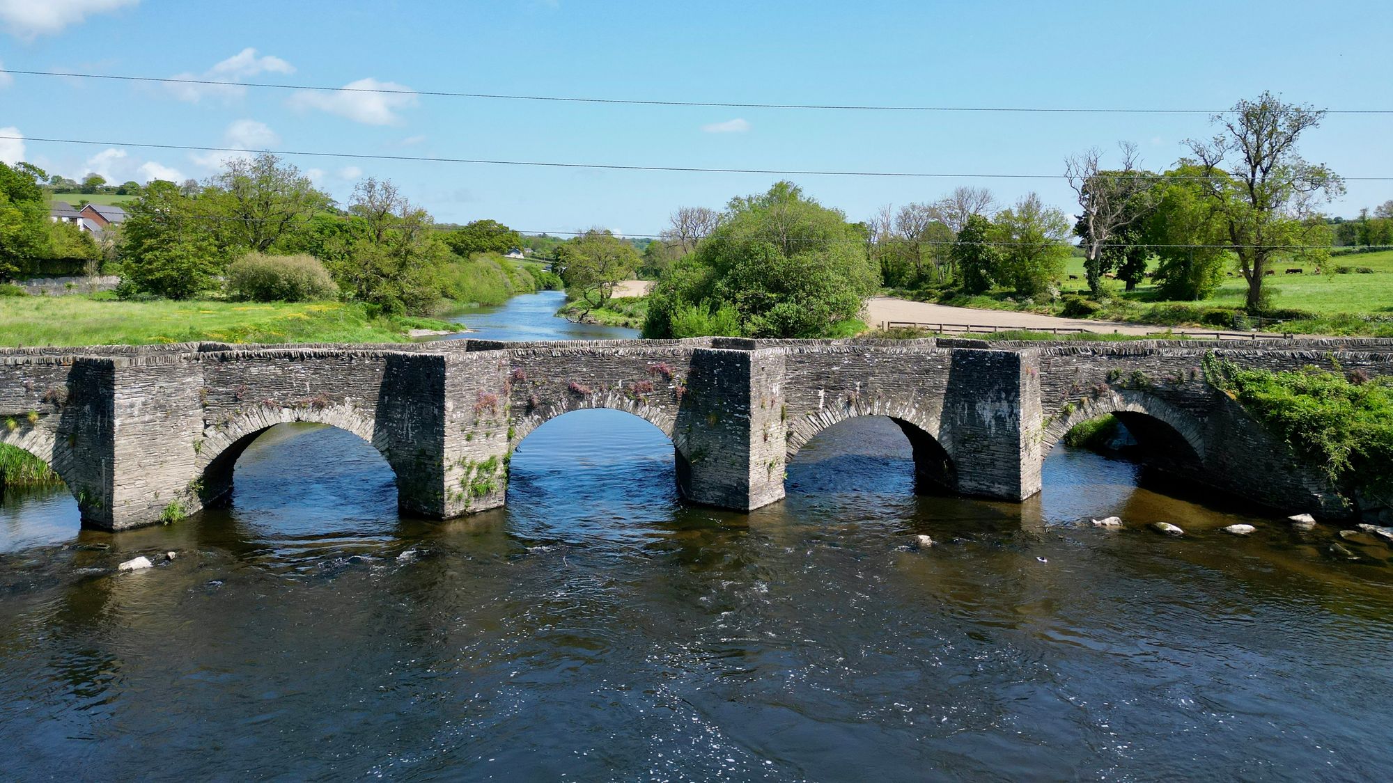 Castle Malgwyn Bridge spanning Afon Teifi in Cardiganshire, Wales, complete with triangular cutwaters, has a date stone of 1656.