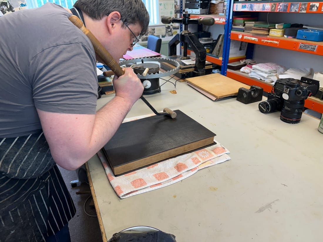 ⬆️ Adam is more than a bookbinder; he is a Time Lord, a guardian of this precious conduit to history, enshrining fragile hooks to the past with a love and dedication that has taken him over 14 years to hone.