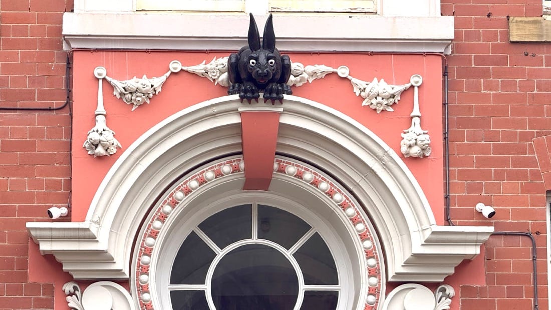 The alternative Easter Rabbit - the vampire rabbit of Newcastle - situated opposite the cathedral entrance.