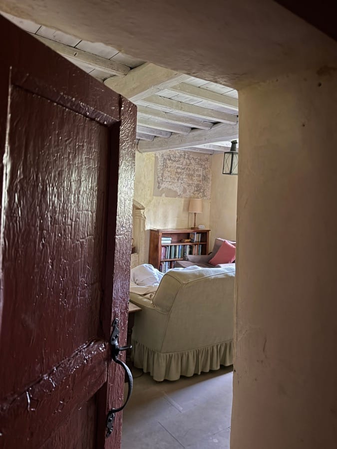 I open it and walk inside; the room is dimly lit but the patterns on the wall pull me onwards until I stop and rest my eyes on some words etched upon the limewash: