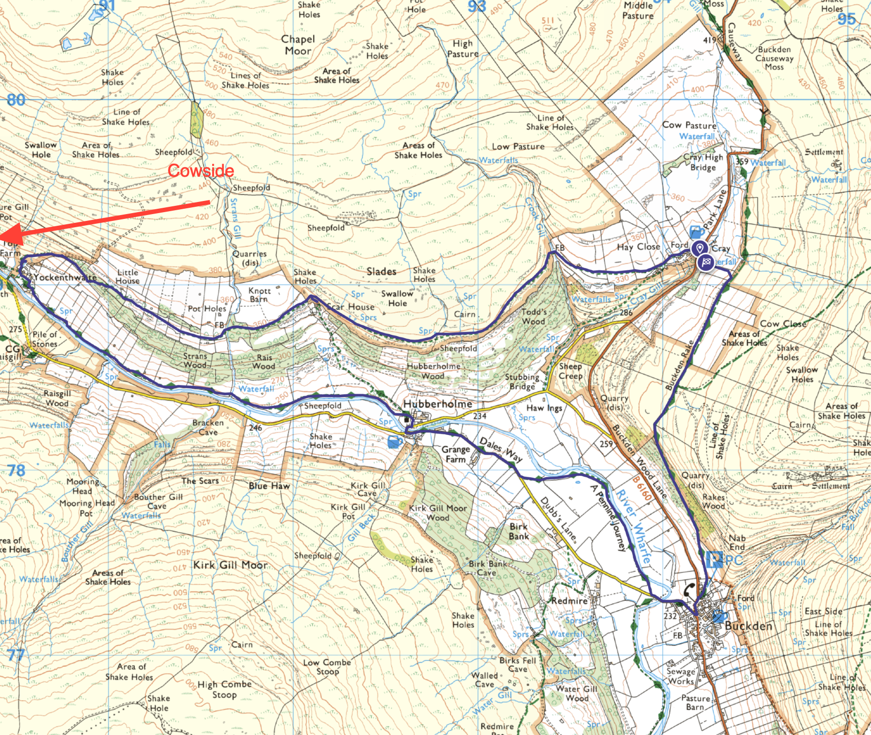 Cowside is about another mile up the dale from Yockenthwaite and viewable from the roadside (although the farmstead isn't accessible to the public).