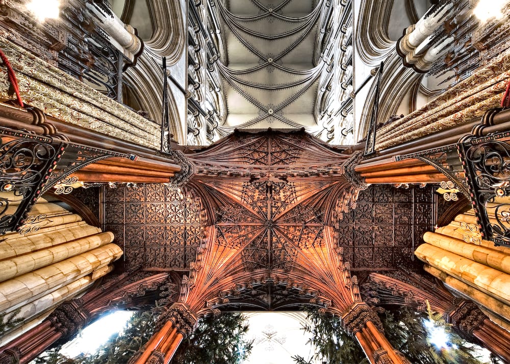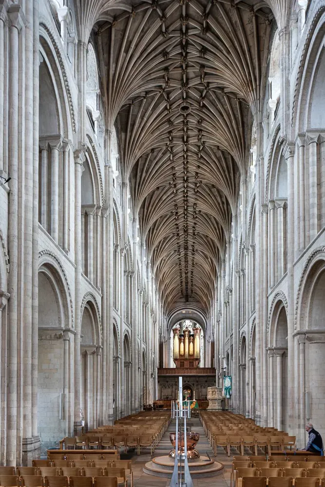 📷 Taken with the tilt shift lens: The magnificent Romanesque nave at Norwich Cathedral is crowned with a later vaulted ceiling that has one of the most remarkable series of bosses depicting scenes from creation to the last judgement.
