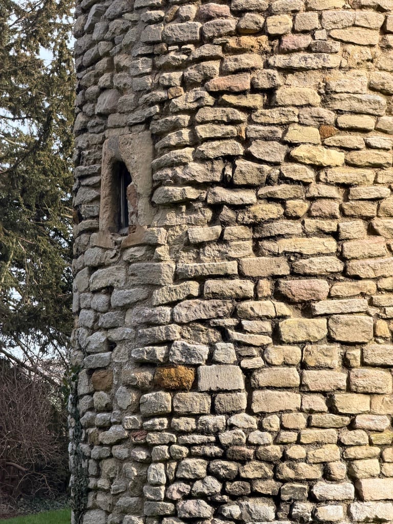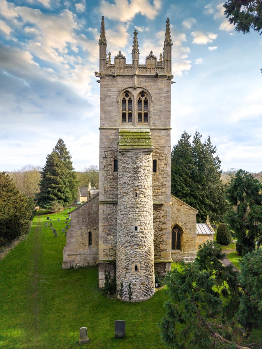 The church was All Saints’ at Hough-on-the-Hill - part Saxon, the circular staircase tower rumoured to be part of that precious Saxon turriform, where the whole barnacled form gathers upward into a single ancient vertical presence breaching the motte and bailey that is called Castle Hill.