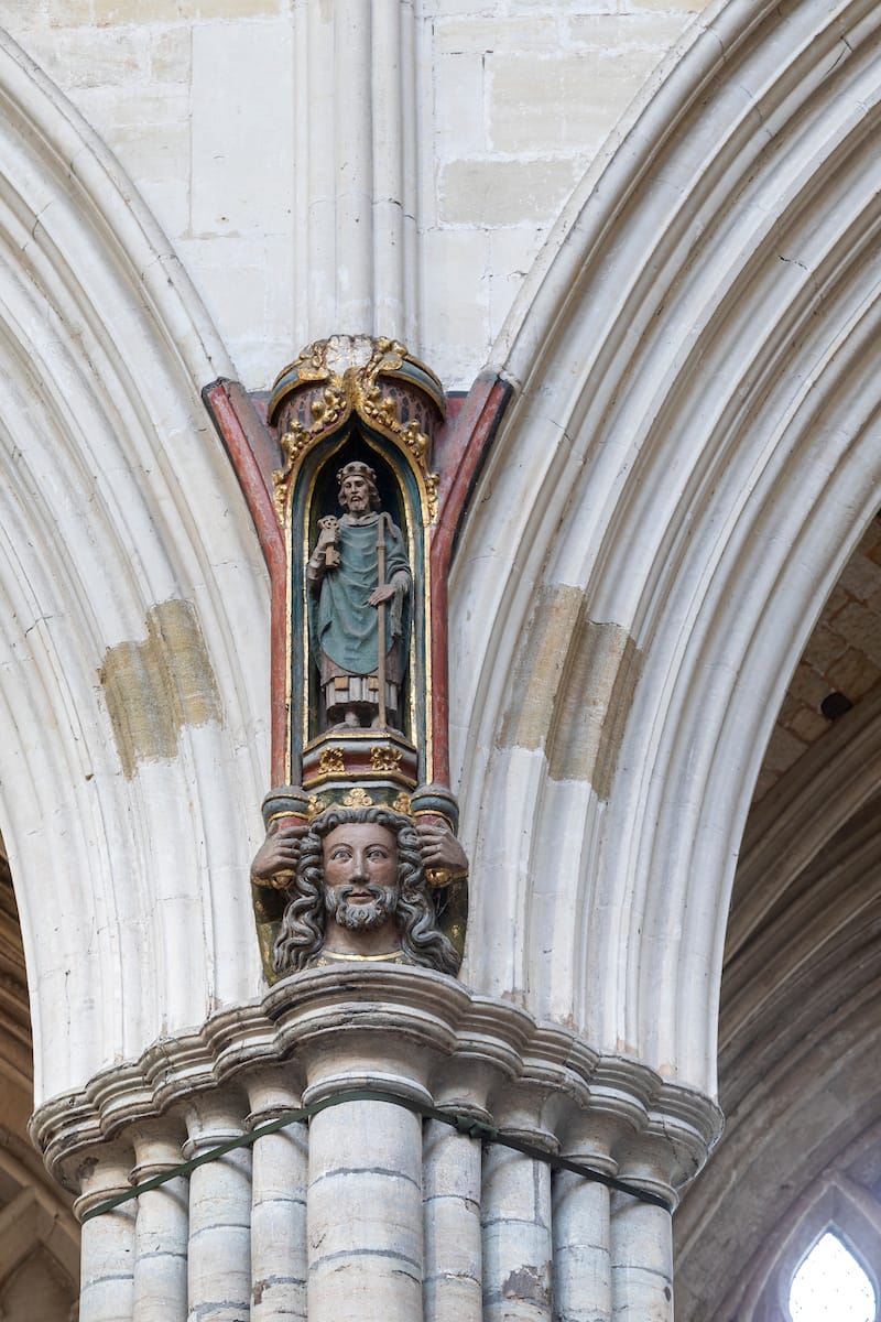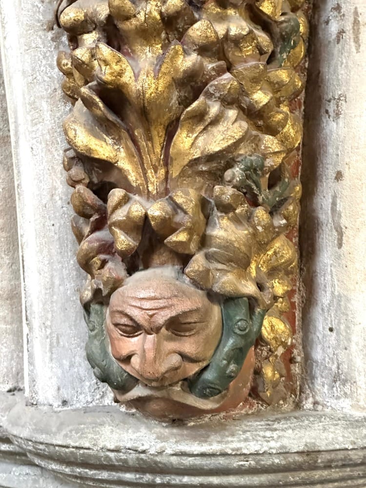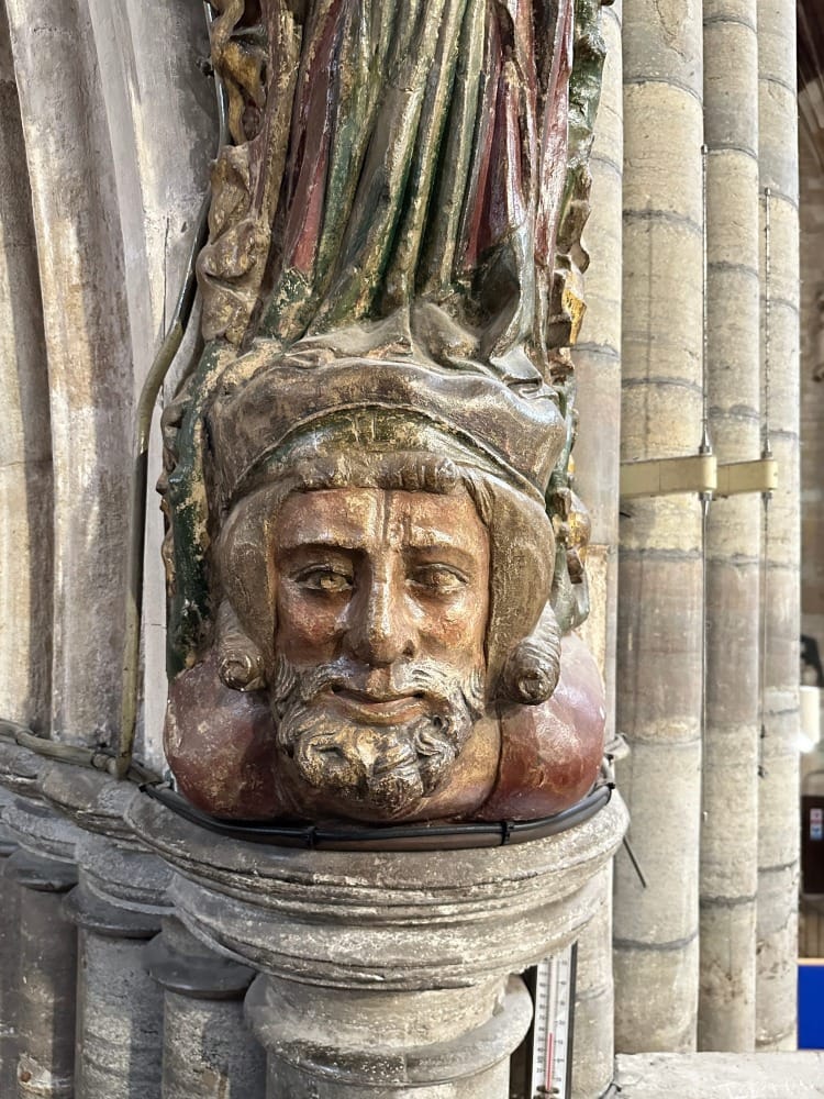 The mid-C14th nave is also decorated with bosses and more stop moulds of delight.