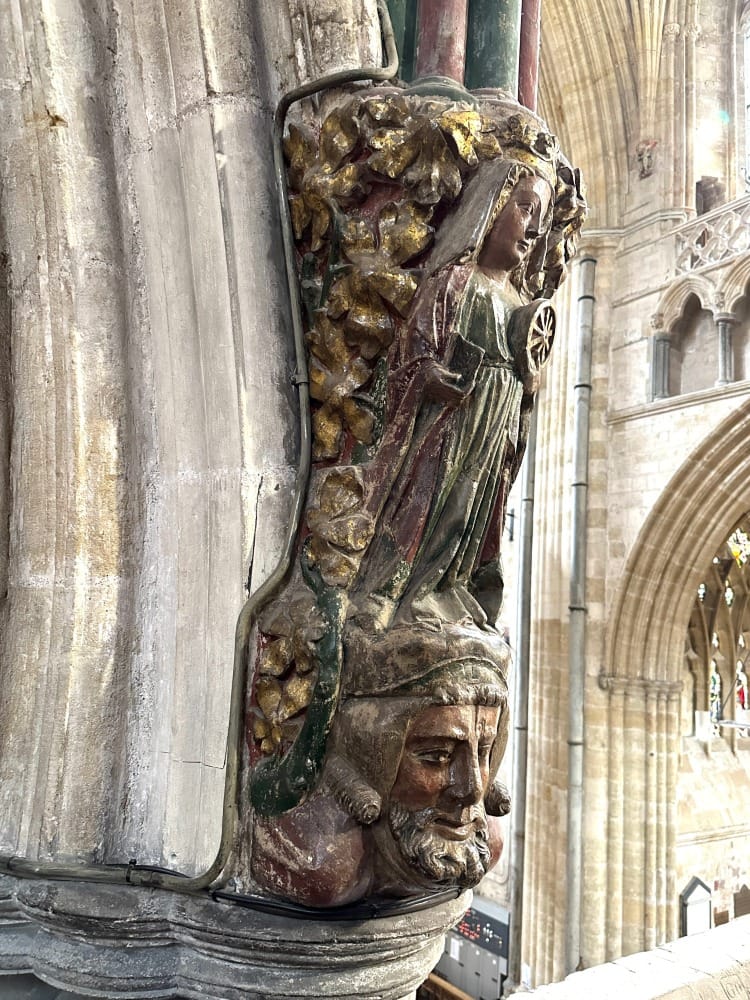 If ever you find yourself in the fine city of Exeter, go and visit the Cathedral, head into the Quire, seek out the whale and go and touch it. I hope it takes you to your place of sanctuary.