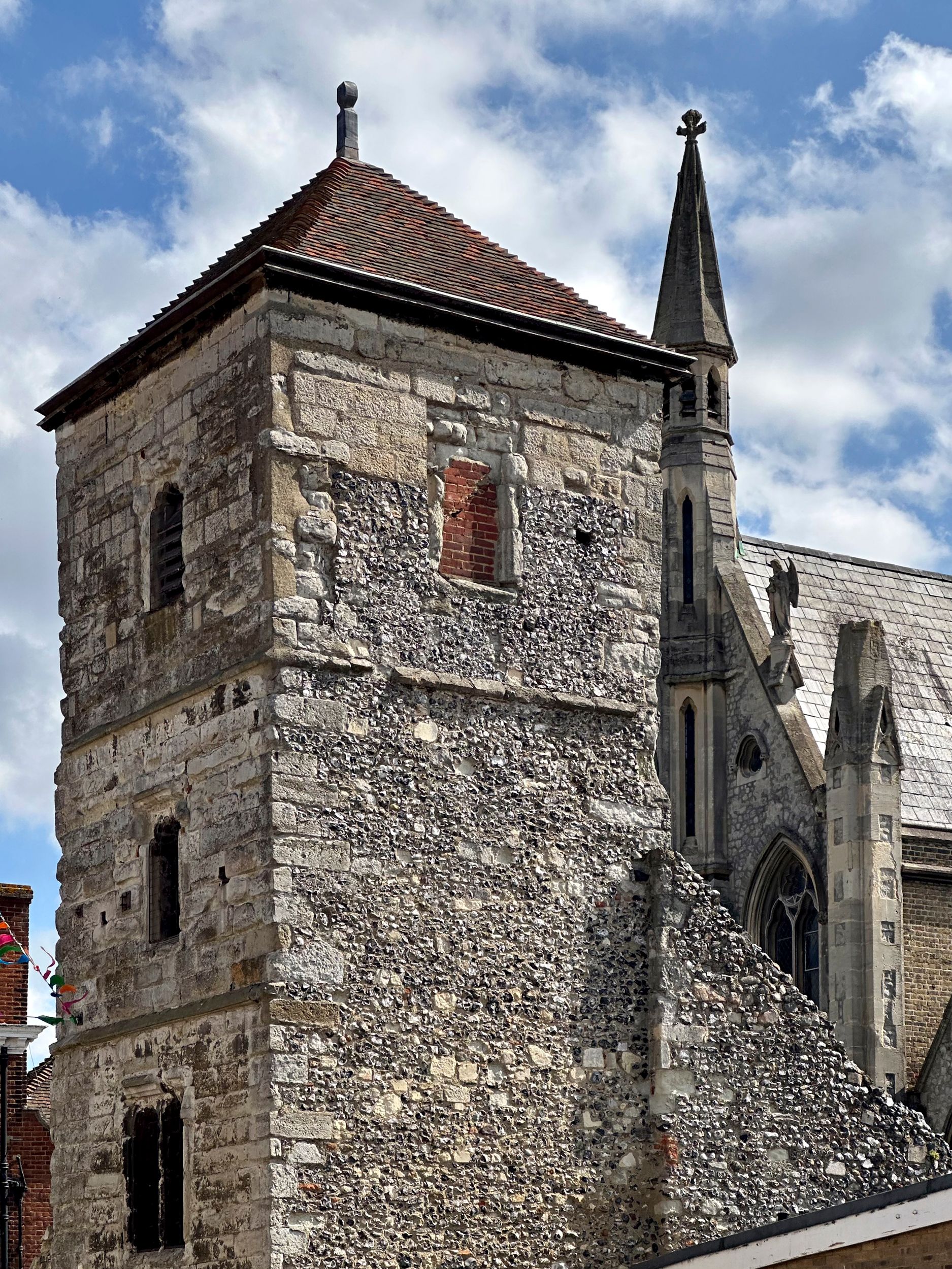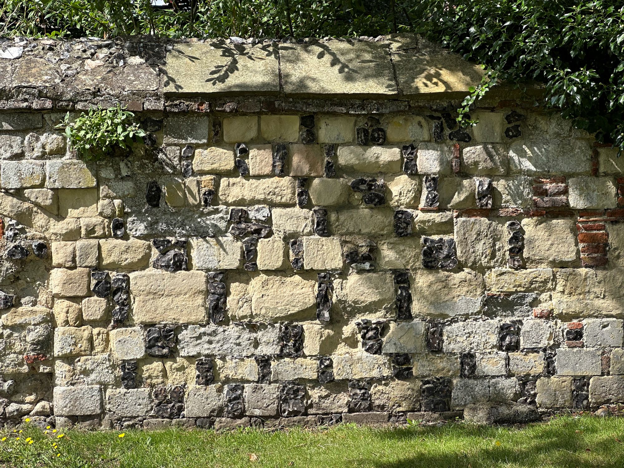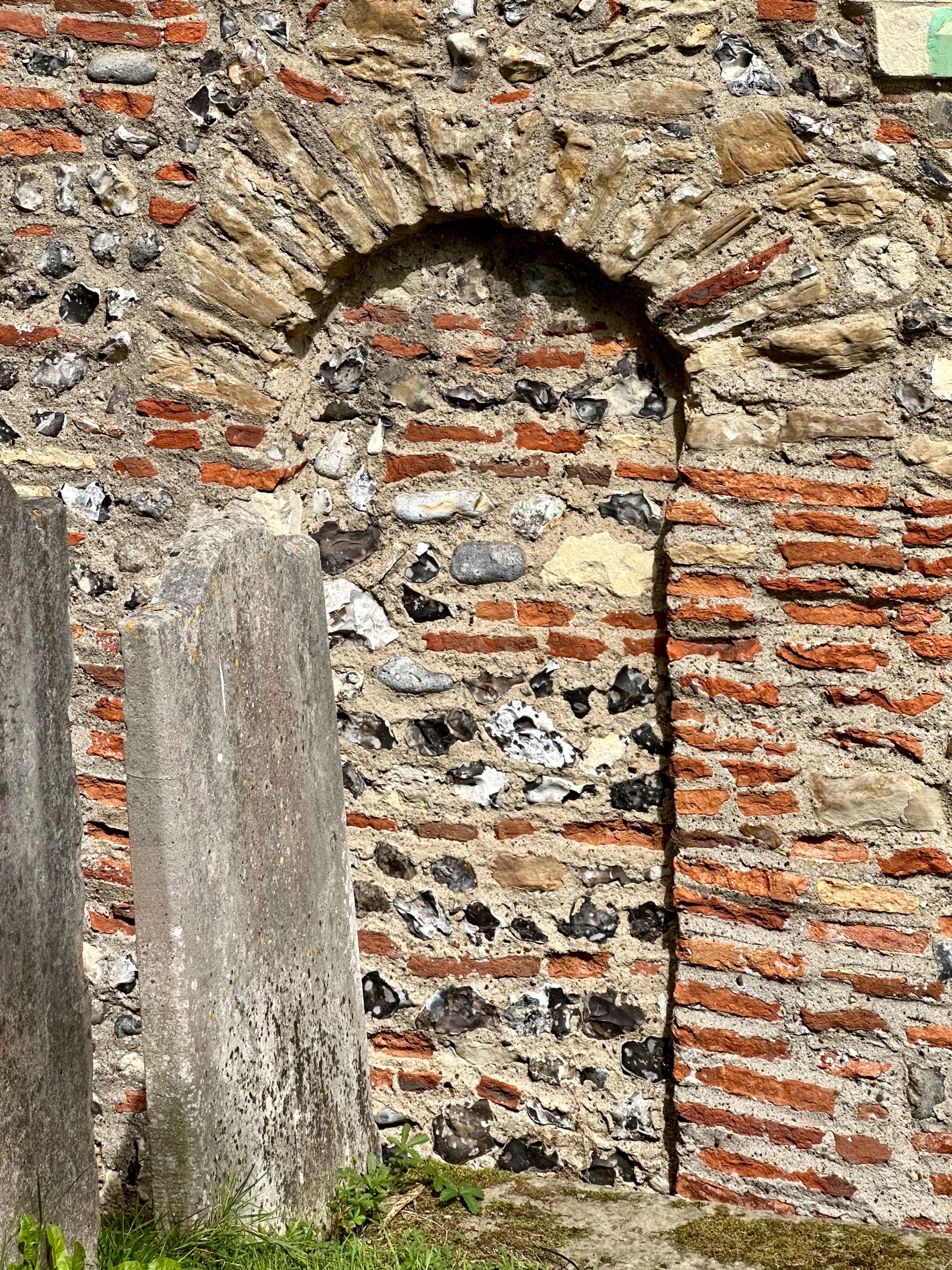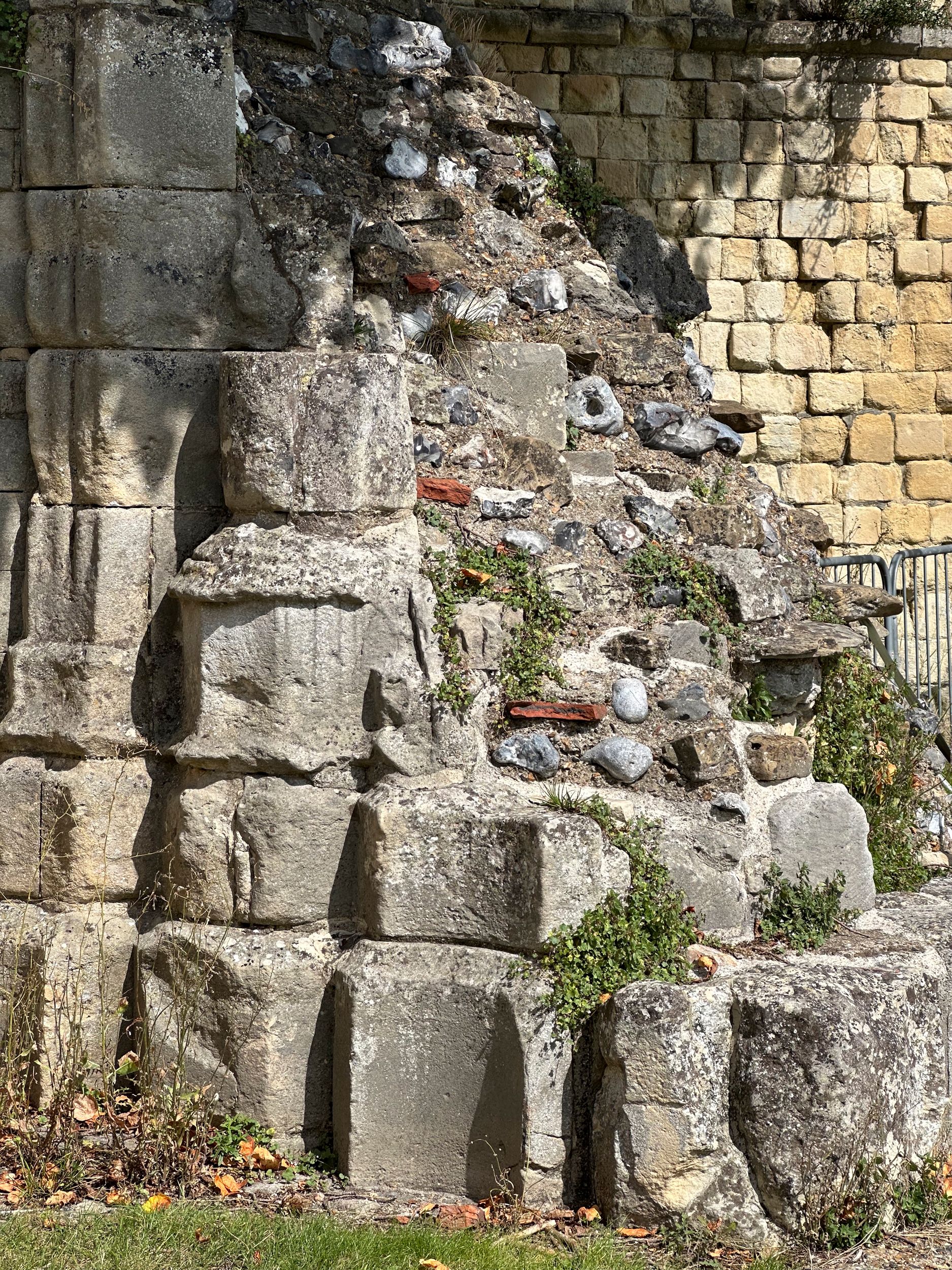 St. Martin's is my first destination. At St. Martin's, I'm eager to see the outside walls which are a patchwork quilt that include Roman, Saxon and later work. I can clearly see the Roman construction bricks dotted around the walls.