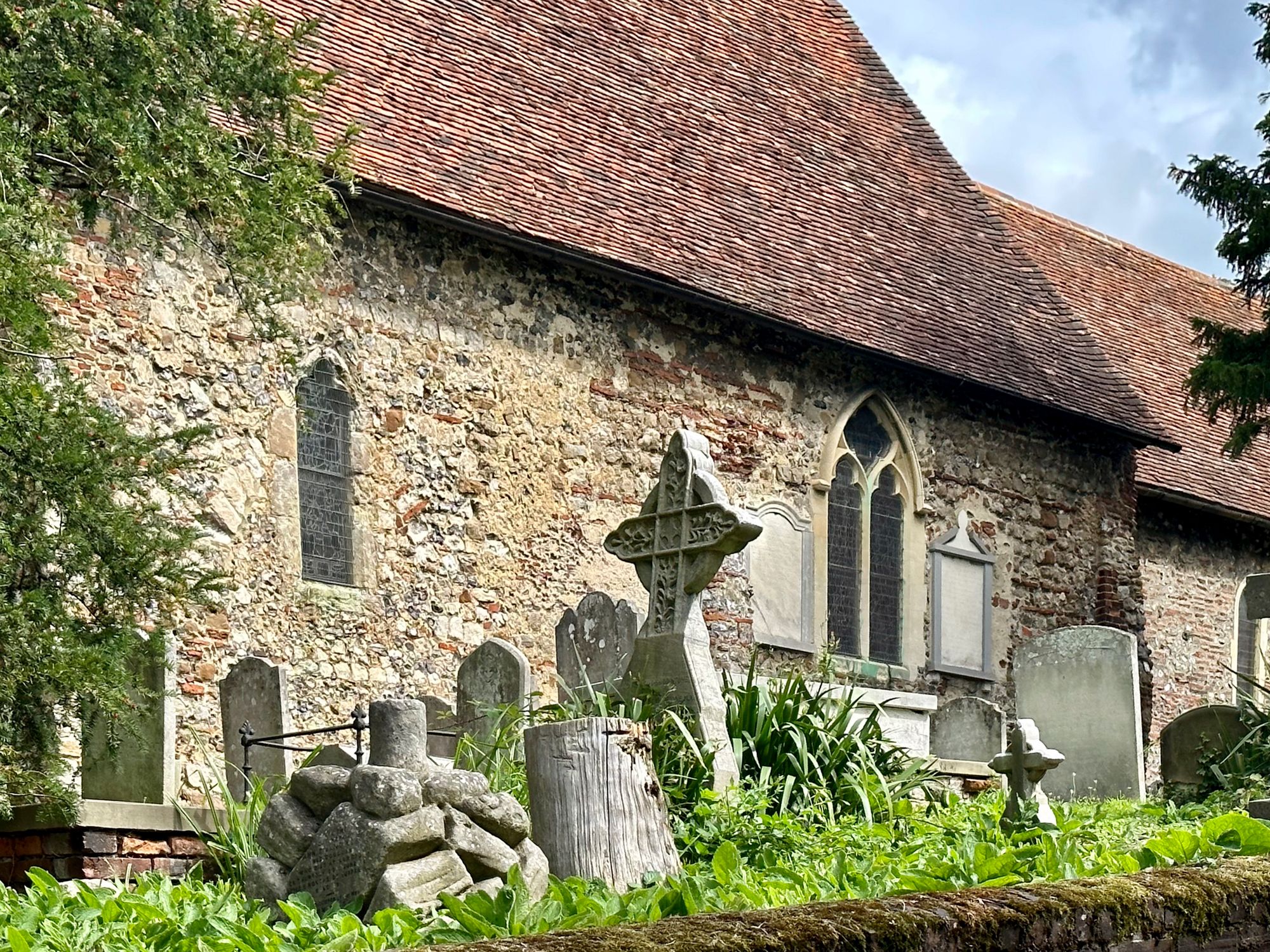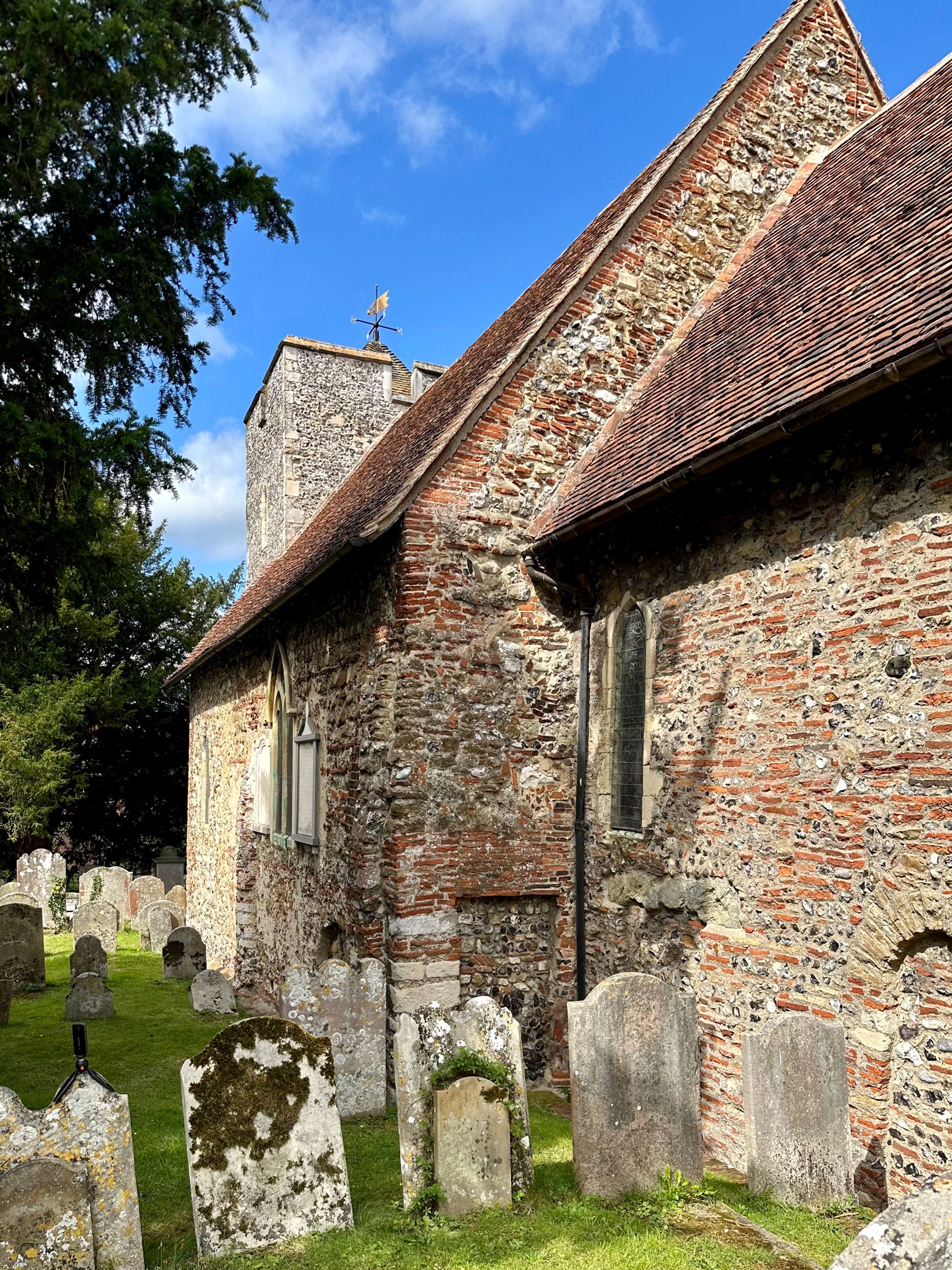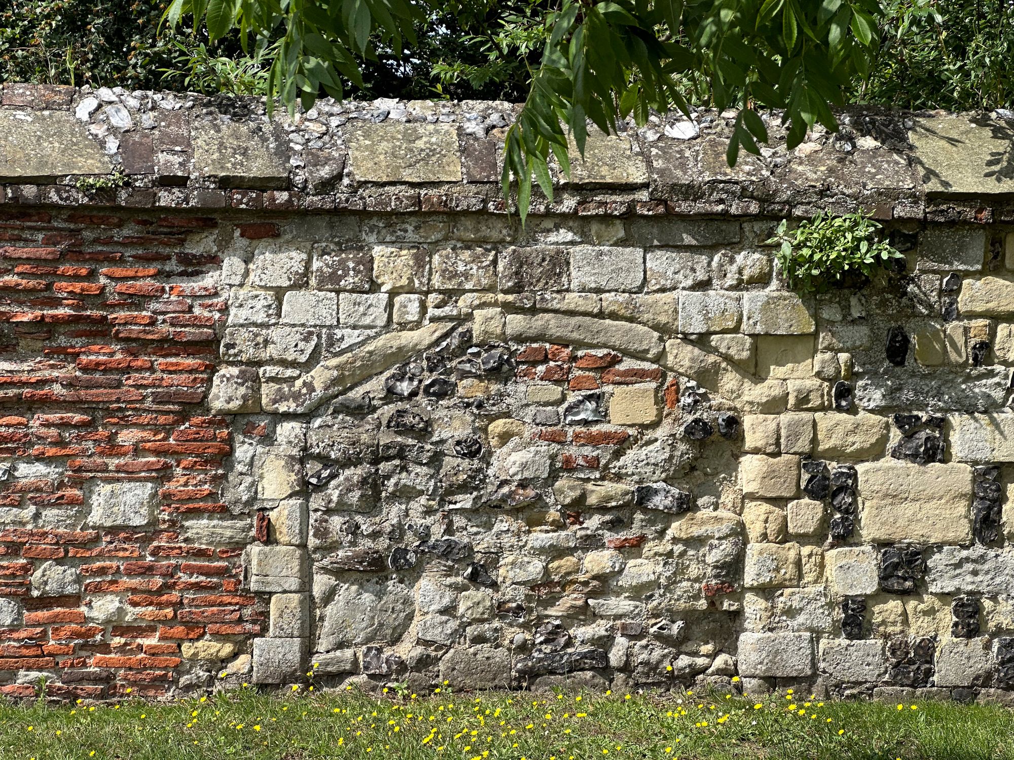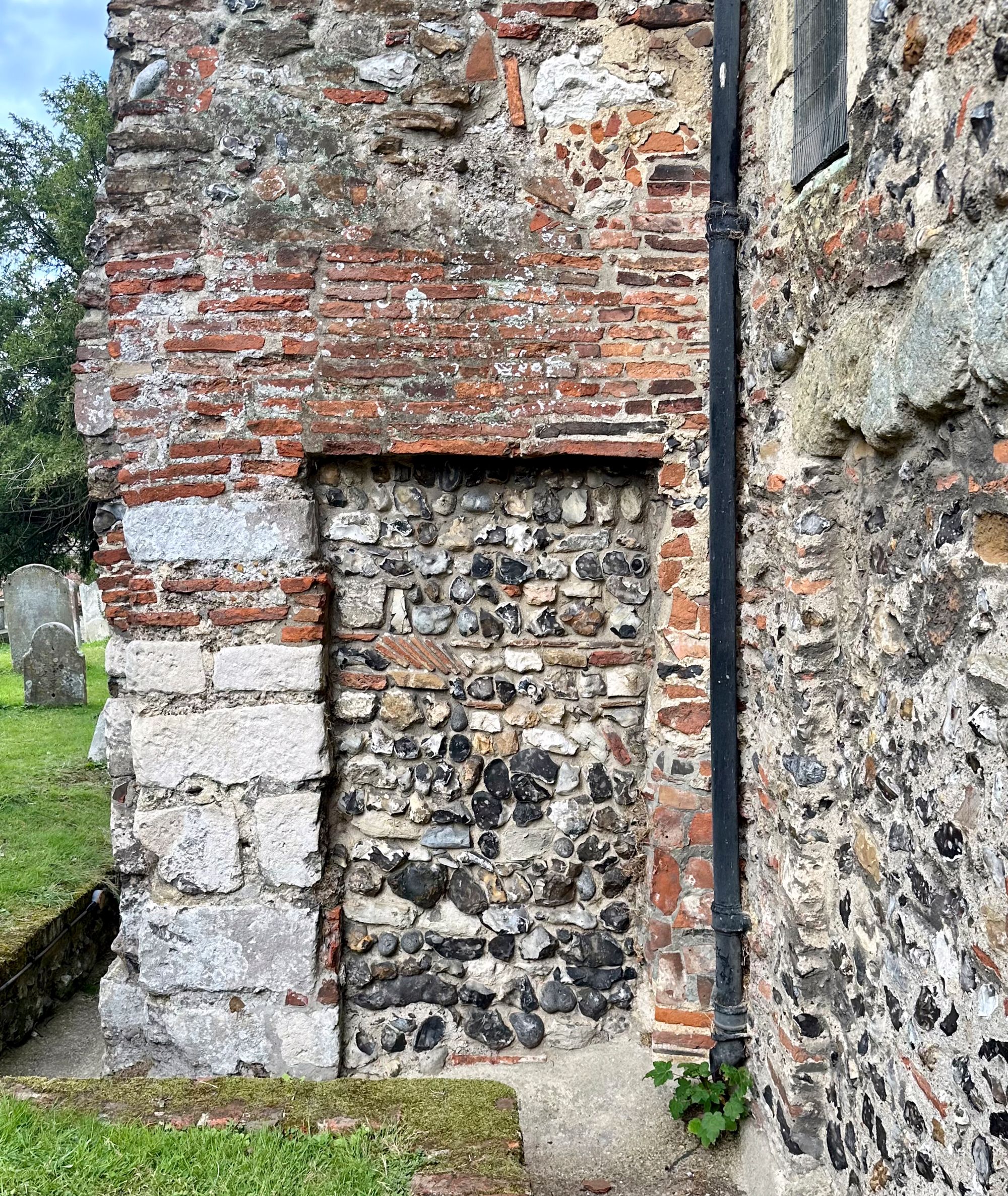 St. Martin's is my first destination. At St. Martin's, I'm eager to see the outside walls which are a patchwork quilt that include Roman, Saxon and later work. I can clearly see the Roman construction bricks dotted around the walls.