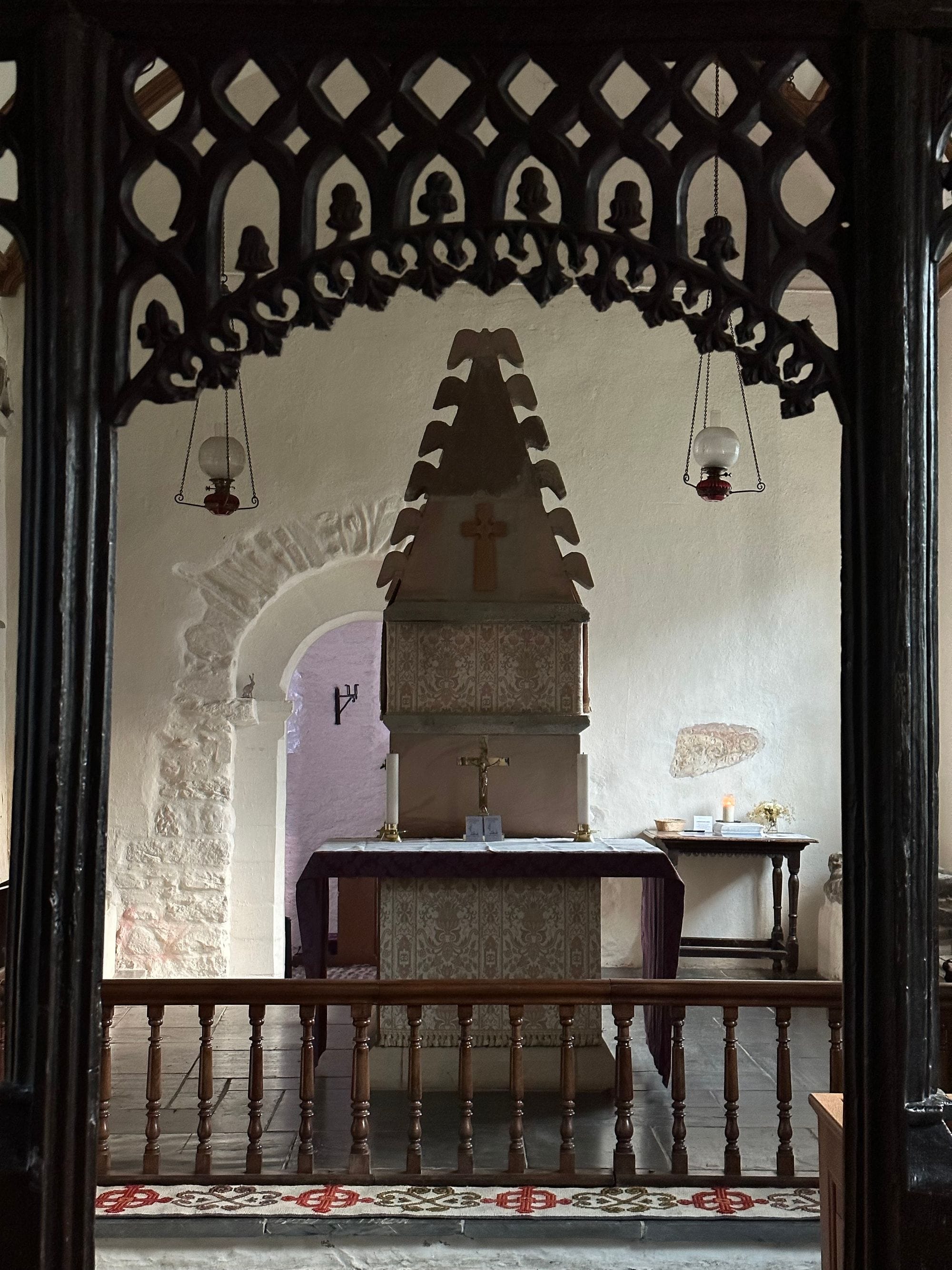 It holds within its walls something quite unique for these parts - a Romanesque shrine. It was erected as a shrine to St. Melangell, who fled here from Ireland to escape an arranged marriage. While living a solitary life, she saved a hare from a royal hunt, where the animal found sanctuary in her robe. A prince, moved by her actions, granted her land for sanctuary, which is still defined by a wall outside the church. The miracles associated with her shrine earned her sainthood. St. Melangell is the patron saint of hares.