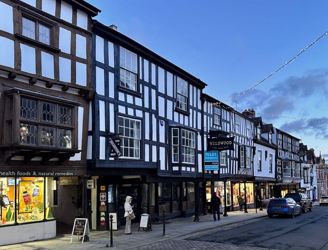 As I drink my pint of Ludlow beer in the Rose and Crown I can see the courtyard outside. The white brick infill is yellowing under the glow of the wall lamps which means it’s time to go out on my walk. This will be a walk into the streets of a town that governed the Marches in Tudor England, but more than that, it will be a journey into twilight.