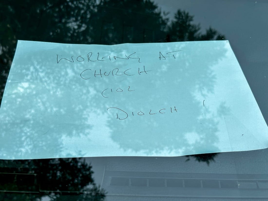 Every church I photograph I leave the same signature and text; but at Ayshford, after cutting myself accidentally, I left a little more than was intentioned.