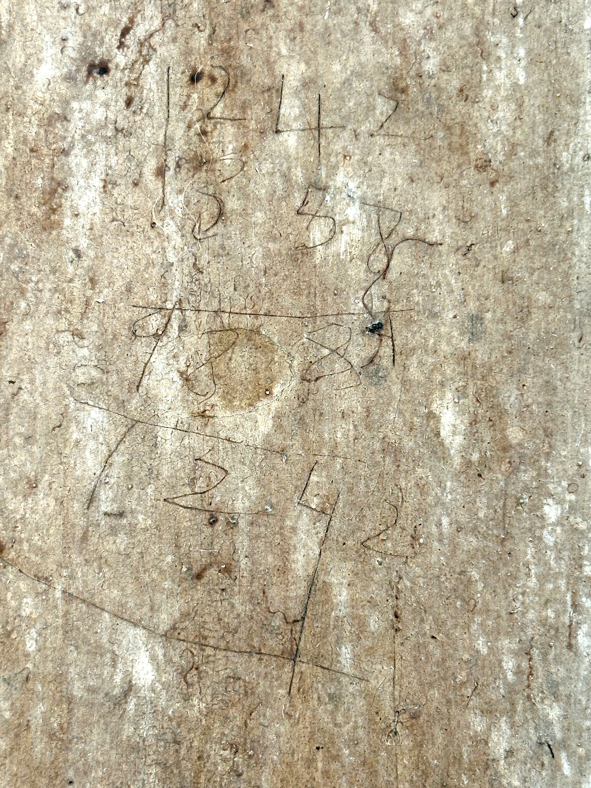 And then, from the sublime to the ridiculous, I come across a faint script beneath some hash marks: