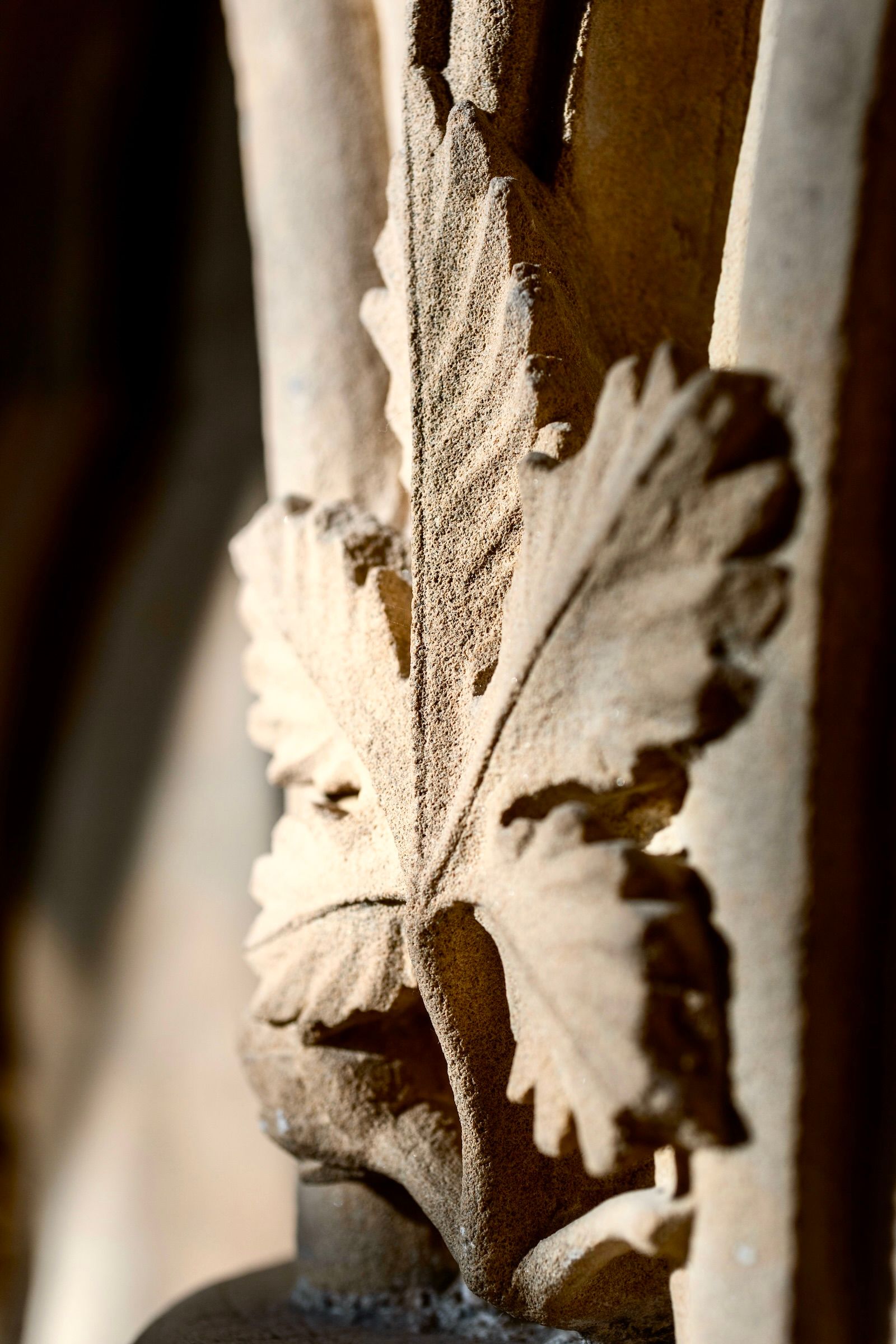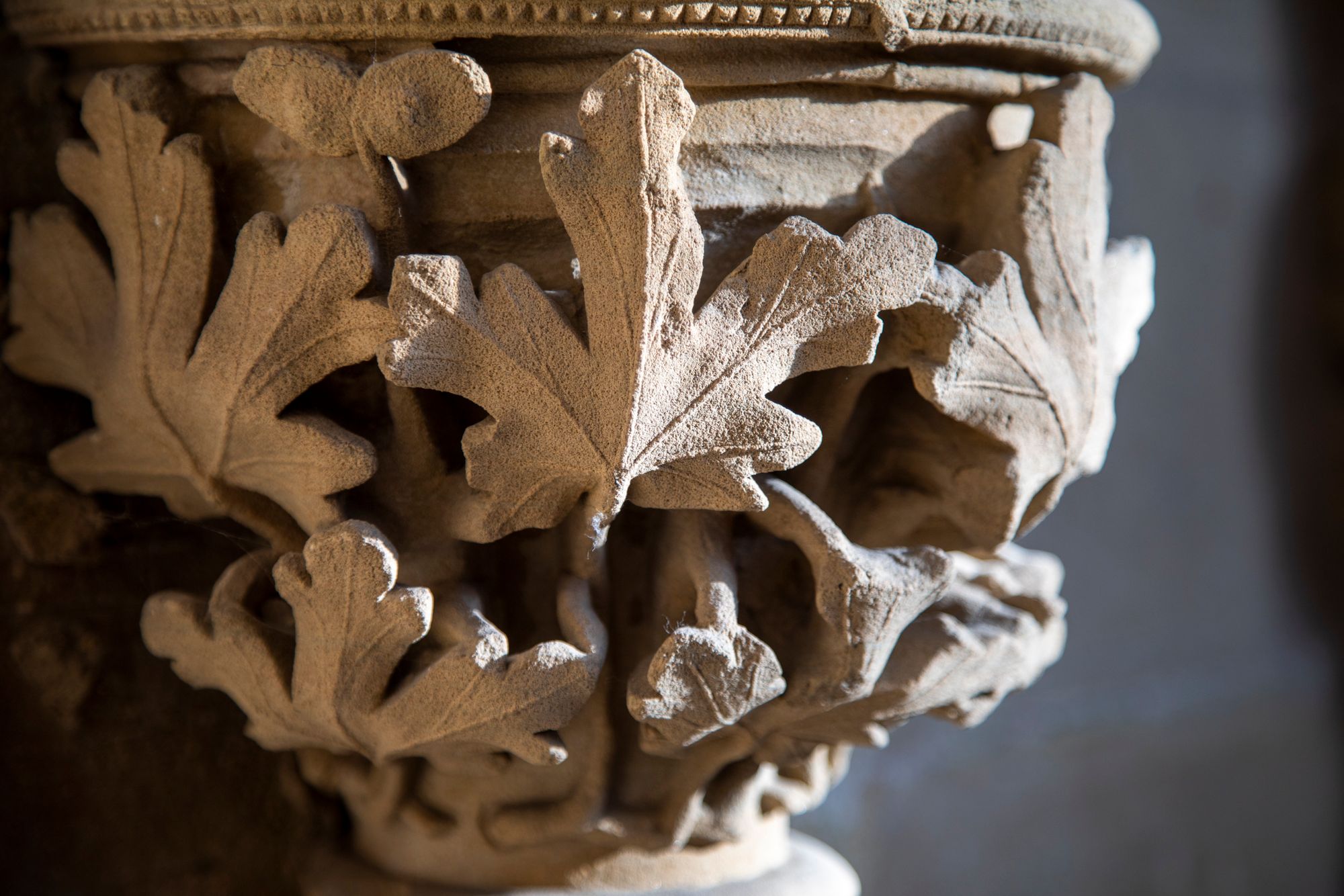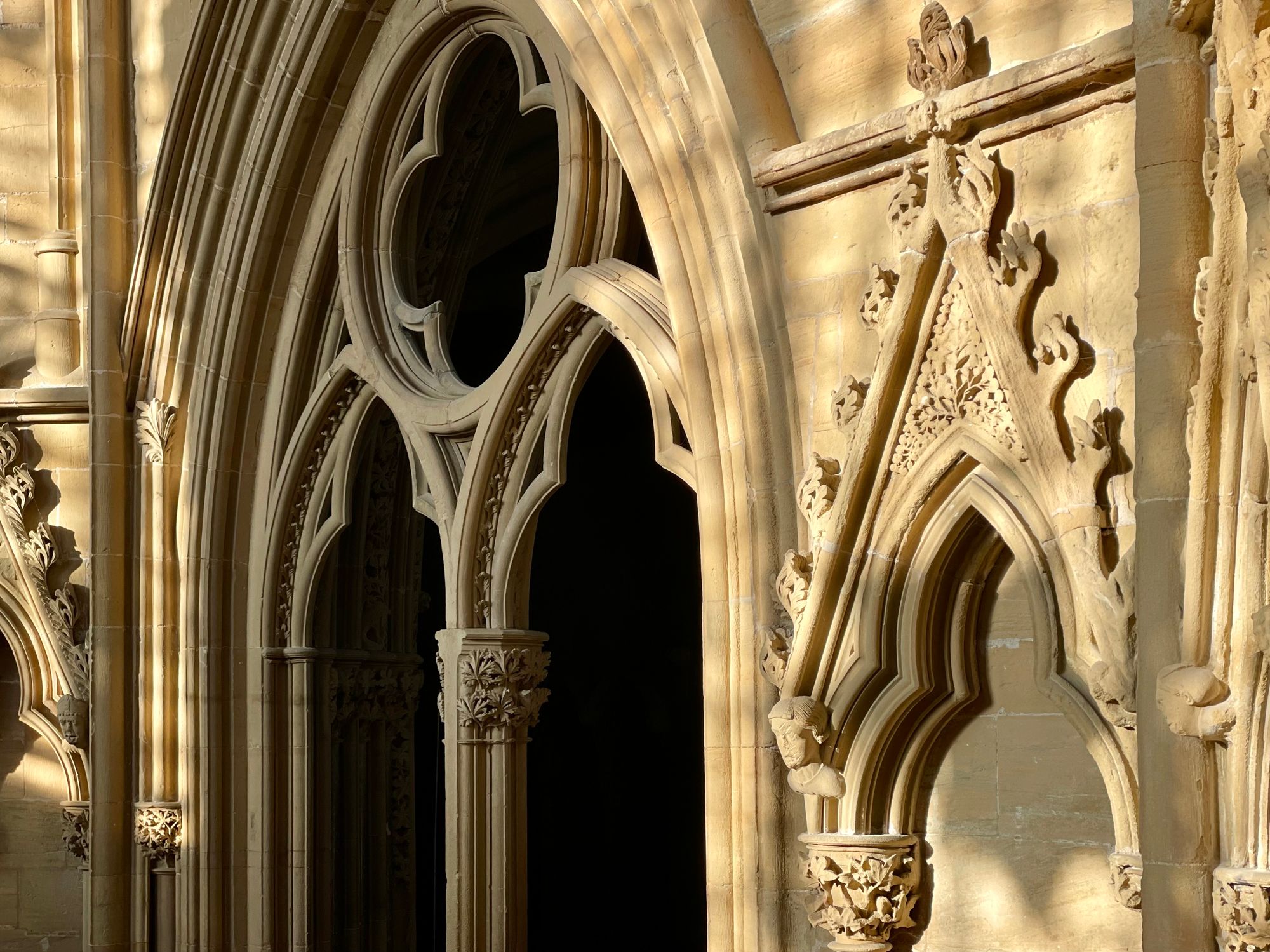 The early morning light is dancing around the stone carvings. The intricately sculptured leaves render this space a marvel of the Gothic genre.