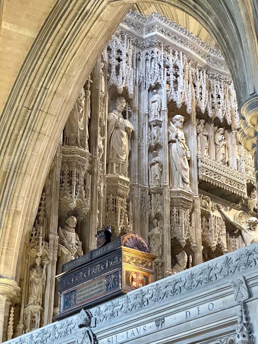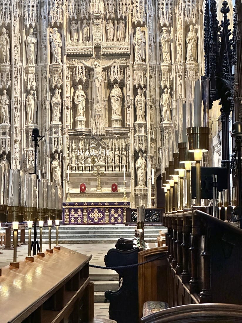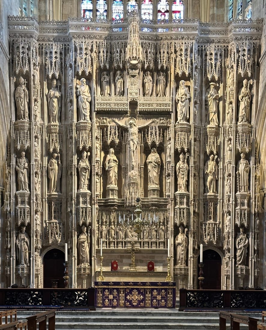 The Great Screen was completed in 1476 and forms the backdrop (reredos) to the altar. It was desecrated in the C16th with many statues being replaced in the Victorian era. It's size and scale is remarkable - a photograph can't really do it justice.