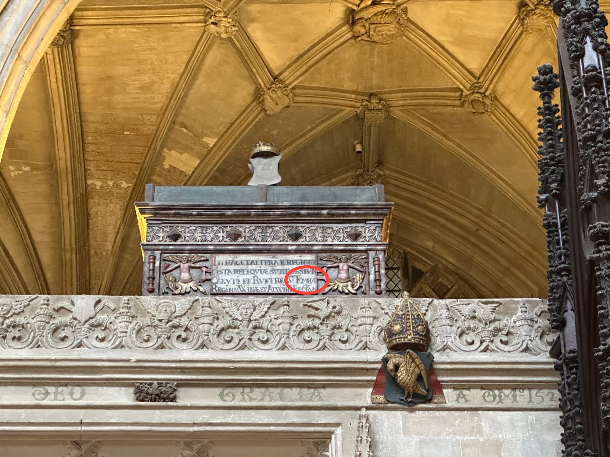 Eventually, my eyes spot a word that I recognise: Reginae, but the rest are a jumble, until I lock onto four simple letters that read out a name: Emma. Whilst it isn’t certain, it is highly likely that the bones inside the casket are that of Emma of Normandy alongside her last husband, King Cnut the Great.