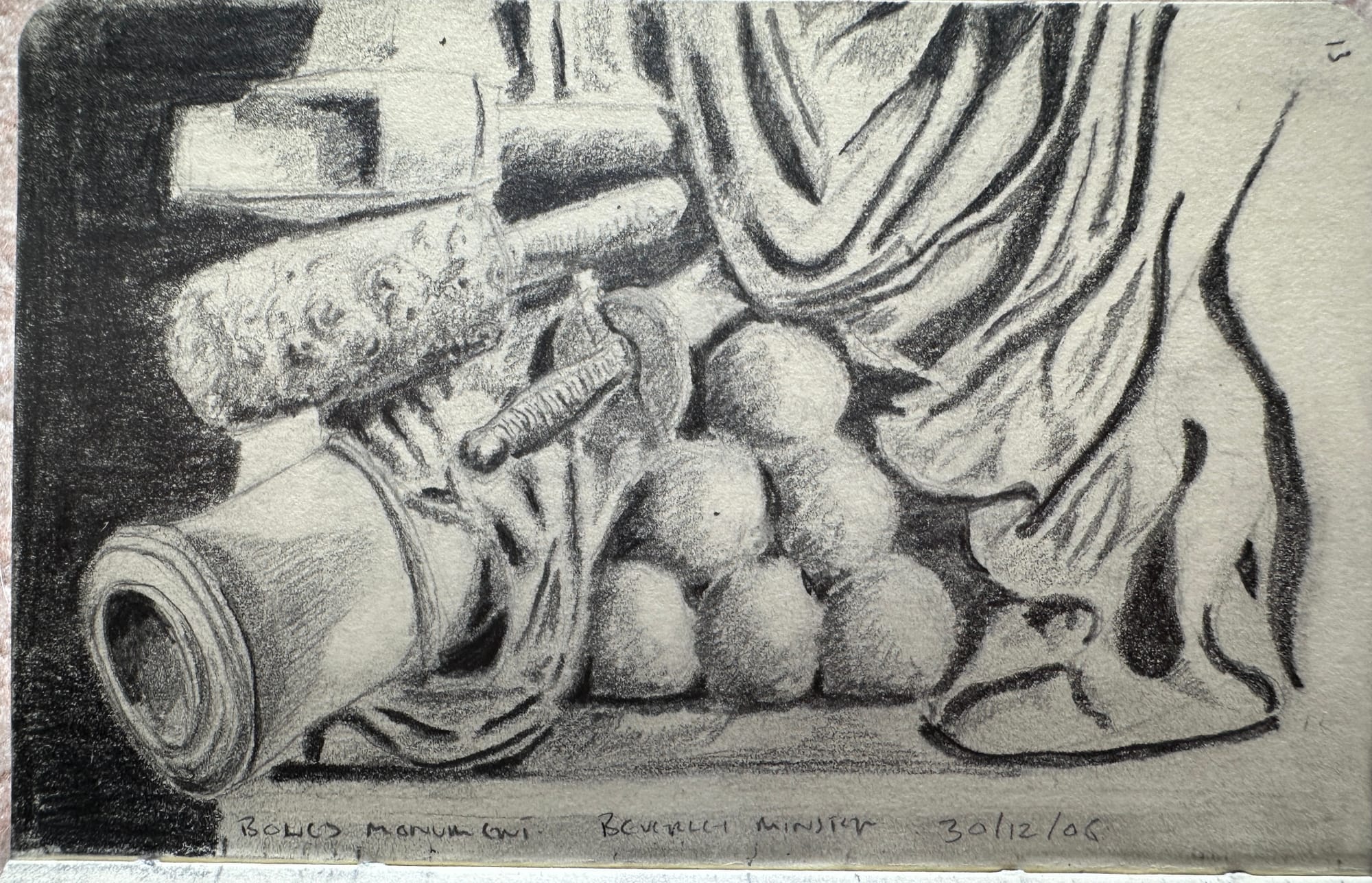 I sit at the back of the nave, taking it all in, when suddenly, the light shifts. The walls transform from dank grey to pale ochre, the stones absorbing the burgeoning light from the windows. This light is magical—born from the clouds, filtered through vapour, emerging from the brooding darkness. The shadows nod towards beauty’s end.